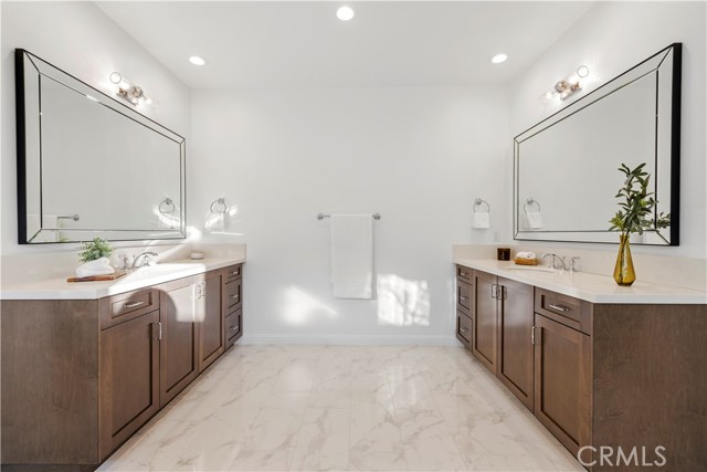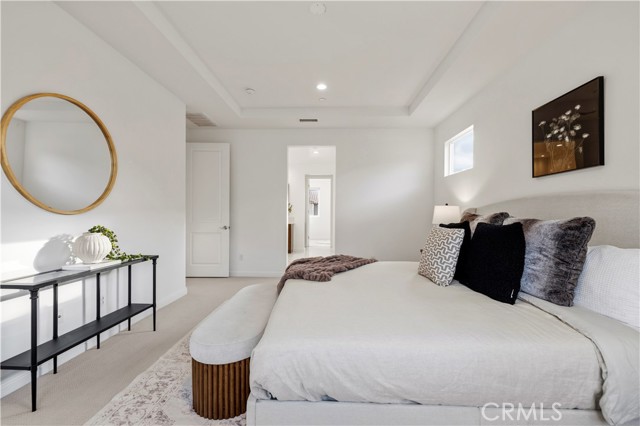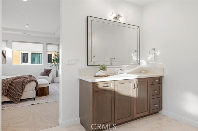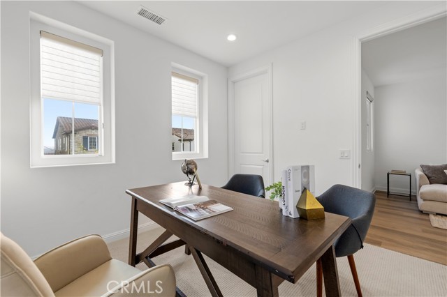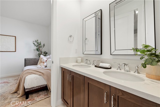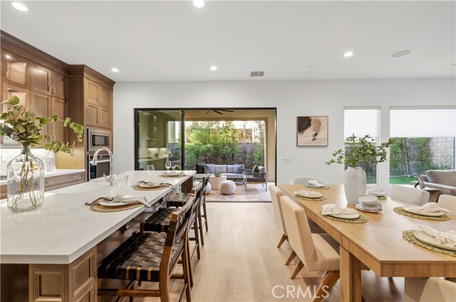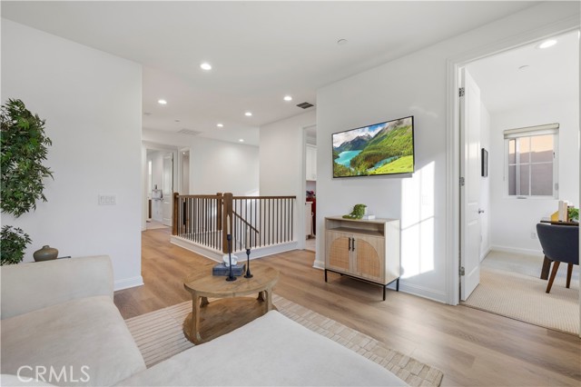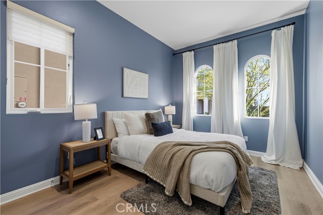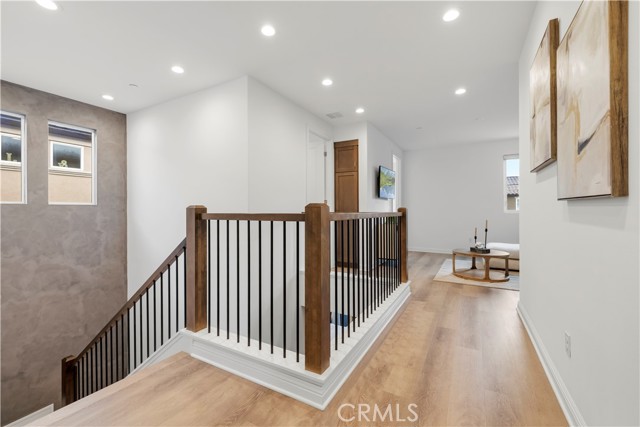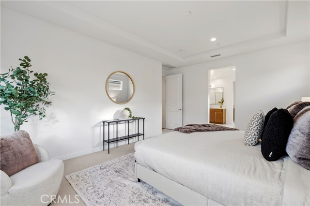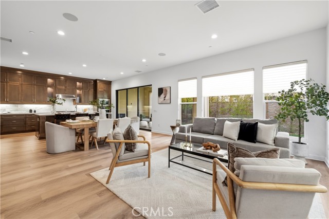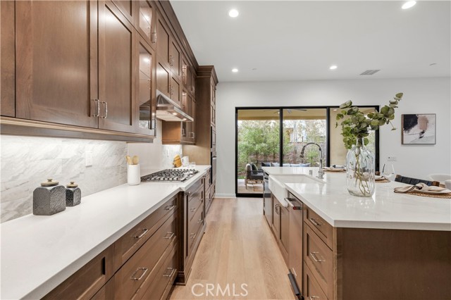 Nestled within the prestigious, guard-gated Canyons community in the highly sought-after Porter Ranch area, this stunning residence offers 5 bedrooms, 4 bathrooms, and a spacious loft designed for modern living. Upon entry, you’re welcomed by an elegant foyer highlighted by luxurious laminate flooring and an abundance of natural light that enhances the home’s open, airy layout. The main level features an expansive great room with built-in speakers—perfect for entertaining and large family gatherings—alongside a dining area and a convenient downstairs bedroom ideal for guests or a home office. The chef’s gourmet kitchen is a true showstopper, showcasing premium finishes throughout. Enjoy quartz countertops, ceiling-height custom cabinetry, stainless steel appliances with a built-in refrigerator, a dedicated coffee bar station, and an oversized center island perfect for casual dining and entertaining. Upstairs includes four bedrooms, highlighted by a stunning primary suite with coffered ceilings, walk-in closet, and spa-like bath with dual sinks, soaking tub, and separate shower. Additional features include leased solar, upstairs laundry, and a 2-car garage. The low-maintenance backyard offers artificial turf and a covered California patio—perfect for entertaining. Canyon Oaks amenities include guard-gated entry, pool, spa, cabanas, BBQ areas, and clubhouse. Close to Porter Ranch Community School and The Vineyards with shopping, dining, and entertainment.