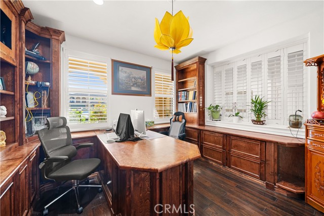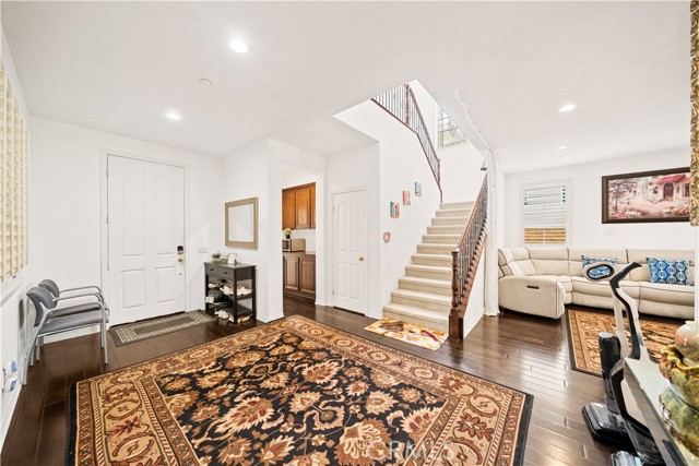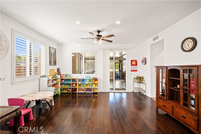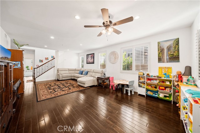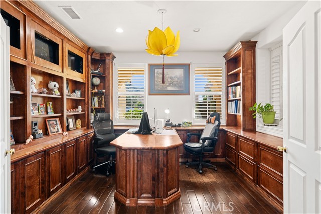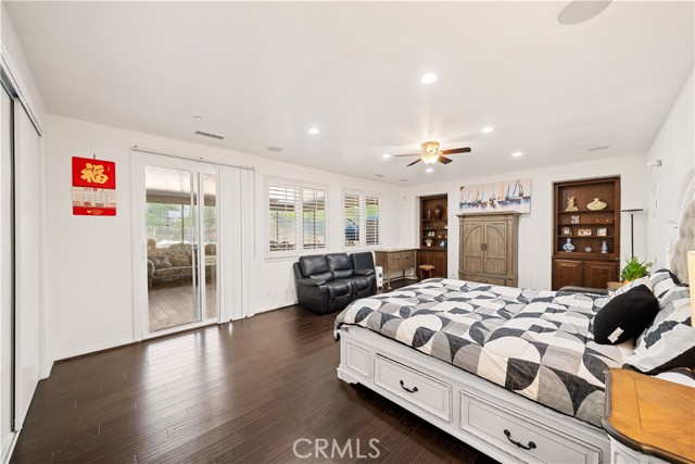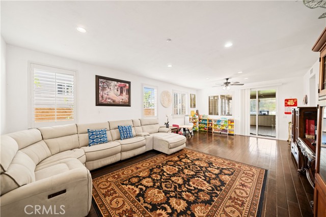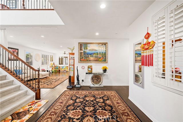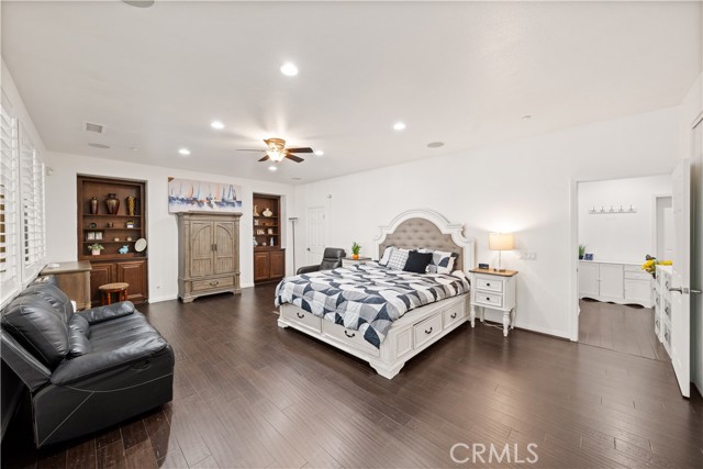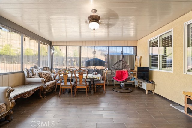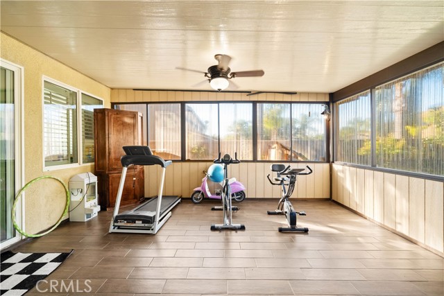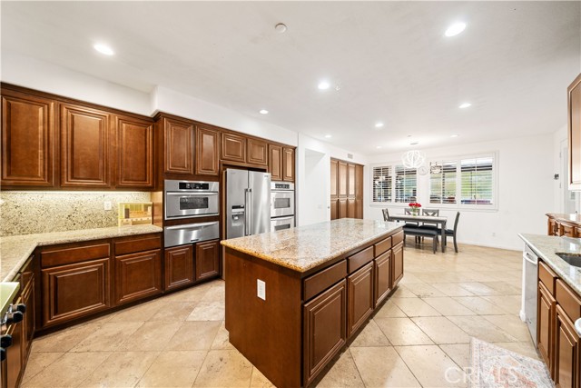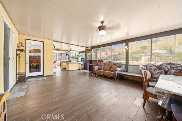 Located in the sought-after Norco Ridge Estates community in Norco, this expansive Plan 5 residence offers approximately 4,749 square feet of well-designed living space on a generous 33,976 square foot lot, with sweeping mountain and neighborhood views that define the Norco Hills setting. The home offers a total of 8 rooms and 8 full bathrooms, providing exceptional flexibility for a variety of living arrangements, including additional bedrooms, home offices, gyms, or creative spaces. A grand entry with a wrought iron staircase leads into formal living and dining areas, accented by dark wood flooring. The kitchen is designed for both everyday use and entertaining, with granite countertops, a large center island, abundant cabinetry, and a full suite of KitchenAid stainless steel appliances, including a 6-burner cooktop, double ovens, warming drawer, and trash compactor. Extending from the spacious family room is a fully enclosed sunroom with a built-in kitchen, creating additional usable interior space ideal for gatherings and year-round enjoyment. Additional interior highlights include office with custom built-in desk and cabinetry, a large upstairs bonus room, plantation shutters, and a well-equipped laundry room with storage upstairs, along with a secondary laundry setup in the garage for added convenience. The primary suite offers a private retreat with dual walk-in closets, and a bathroom featuring a soaking tub, separate shower, and detailed finishes throughout. The oversized backyard is designed for both relaxation and entertaining, featuring a fire pit, and multiple activity areas including a putting green, basketball court, and horseshoe pit. An elevated gazebo patio provides an additional vantage point to take in the surrounding views. Over $200,000+ has been invested in upgrades and improvements throughout the property, including a fully paid 32-panel solar system, upgraded 220V electrical in both the garage and yard, a soft water system, and drinking water filtration systems in both kitchens. Additional features include gated RV parking, a 4-car garage, and a cul-de-sac location that offers both space and privacy. A well-rounded property that combines size, flexibility, and scenic surroundings in one of Norco’s premier neighborhoods.