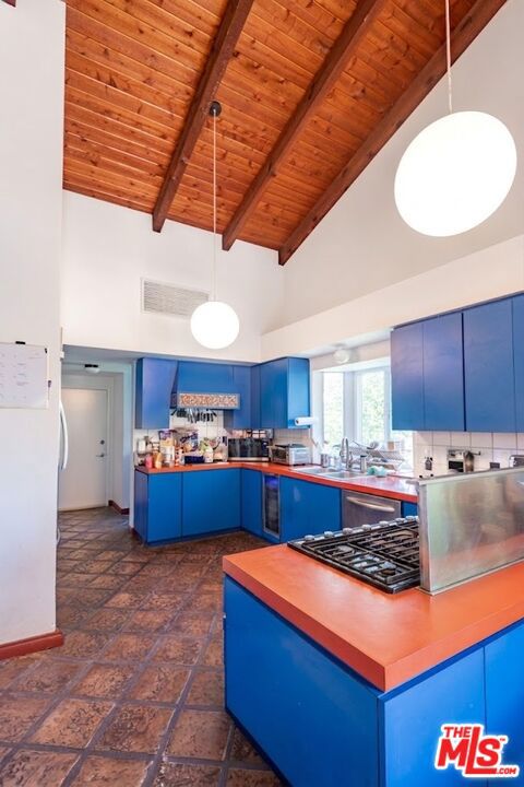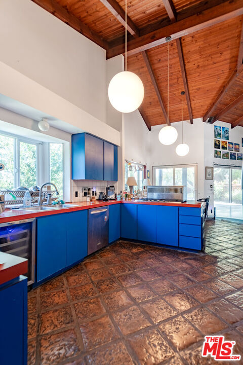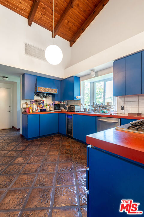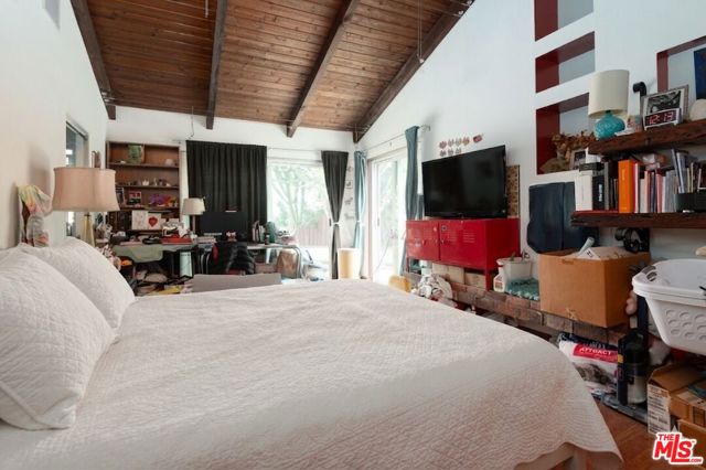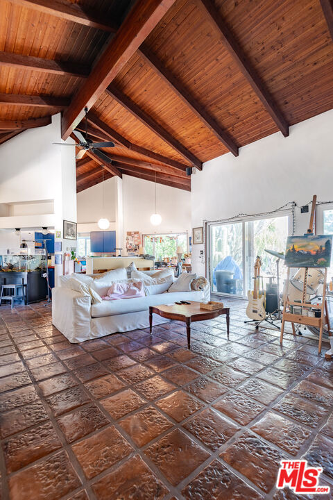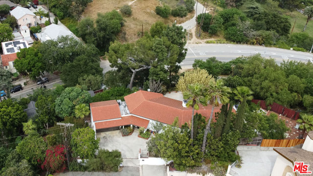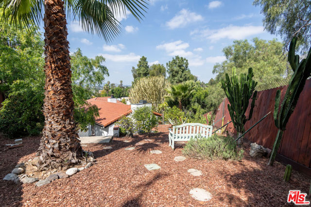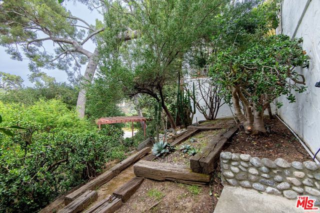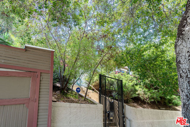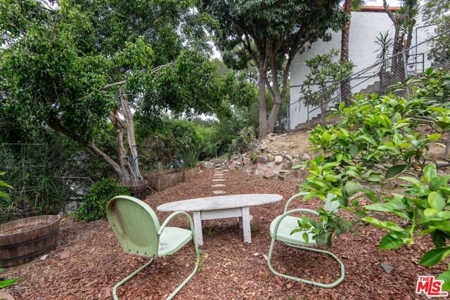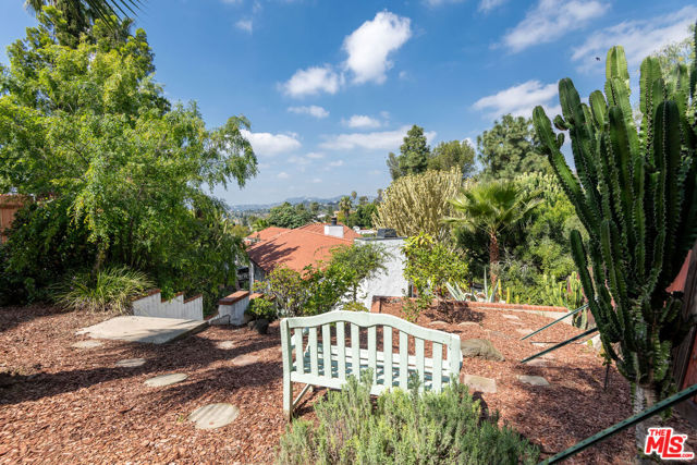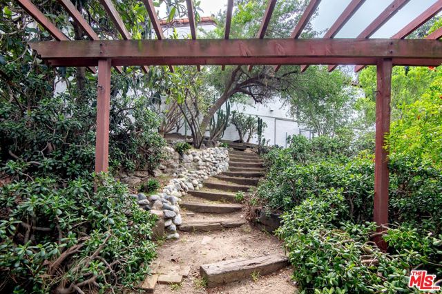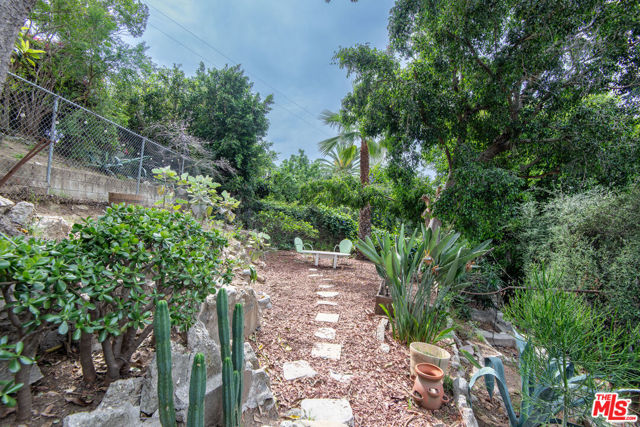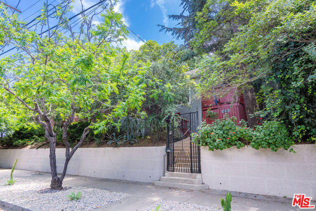 1458 Sutherland is a 3 unit, detached structure property situated on .52 acres in the Echo Park foothils adjacent to Elysian Park. In the early 80's, a well known Silverlake/Echo Park realtor, Stephen Scott, came across an empty lot with a tarp over an old VW minivan. Steve purchased the land and hired Jose M. Cedeo, AIA, who was famous for designing high-vaulted ceiling architectural homes throughout the area. Between 1983-84, Steve worked with Cedeo at 1458 Sutherland and built his dream house using only choice materials. Situated on half an acre, 1458 Sutherland has soaring wood ceilings, open original kitchen, beautiful Spanish tile floors and glass doors opening to the private, expansive deck with views to the Santa Susana mountains. Two artistic fireplaces, brick work and fine wood detailing are some of the well-maintained finishing touches. Additionally, the main home boasts a well thought layout, tucking the sleeping areas quietly away from the main living/entertaining space. As the owner, he loved cacti and desert landscape, varieties were brought in along with proper soil. Evidence of his cacti gardens can be seen throughout the grounds. When Steve chose to relocate to Palm Springs, the current (second) owners fell in love with the natural elegant design along with its privacy. The new owners, one a renowned anthropology professor at USC, enjoyed many elysian years here with the proximity of Music Center, Dodgers Stadium (with views of fireworks), dog walks in Elysian Park, and many USC parties including receptions for Jane Goodall. In addition to the main structure, the property has two income cottages, each 2 bedroom, with addresses, private access and parking on Scott Ave.. Rock pathways wind from Sutherland down to the cottages at the street below. A row of six garages on Scott Ave. has a fourth address attached to it which could have potential for additional income unit/ADUs.