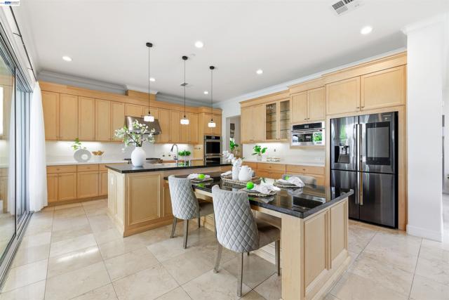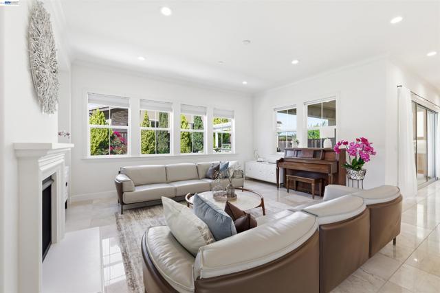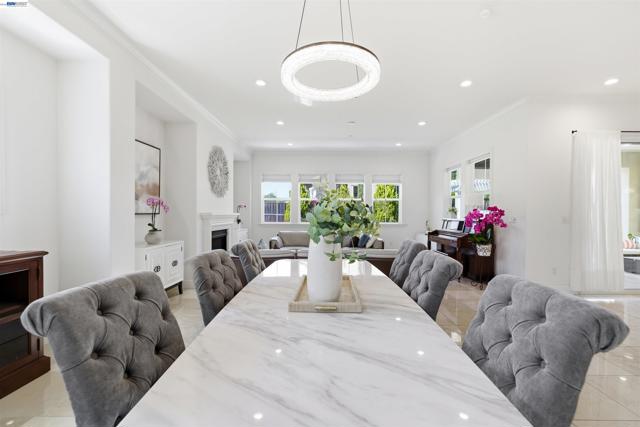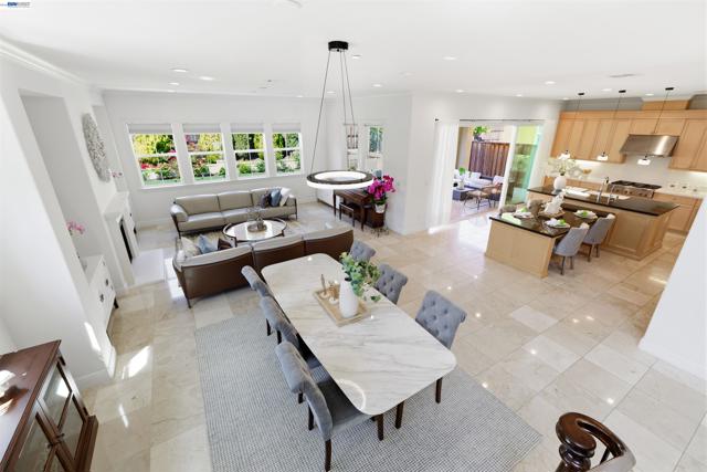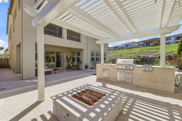 Welcome to 103 Camelia Ct, a stunning 2018-built Torino model by Toll Brothers in the prestigious Alita at Gale Ranch. This beautifully maintained 4-bedroom, 4.5-bath home offers 3,620 sqft of refined living space on the largest lot in the subdivision (10,318 sq ft), combining luxury, comfort, and breathtaking views of open space, rolling hills and Mount Diablo. Designed for modern living, the open-concept floor plan features granite flooring on the main level, maple hardwood upstairs, and an elegant iron spindle staircase. A dramatic 15-ft glass door opens to the California Room, creating seamless indoor-outdoor living. The resort-style backyard is an entertainer’s dream with a built-in BBQ, pergola, fire bowl, and beautifully curated rose, vegetable, succulent gardens, and fruit trees. The gourmet chef’s kitchen boasts granite countertops, a large island with extended breakfast bar, maple cabinetry, and premium built-in Jen-Air appliances including a double oven and microwave. The family room with gas fireplace and dining room with buffet add warmth and functionality. Upstairs, a versatile loft offers space for a home office, gym, or playroom. It can be easily convert to a 5th bedroom. The luxurious primary suite features a private balcony with Mt diablo view, dual walk-in closets, and spa-like comfort . Additional upgrades include dual-zone HVAC and a tankless water heater, Ideally located near top-rated schools (Gale Ranch Middle & Dougherty Valley High), City Center Bishop Ranch, Bridges Golf Club, parks, and scenic trails—this exceptional home offers the best of Gale Ranch living.