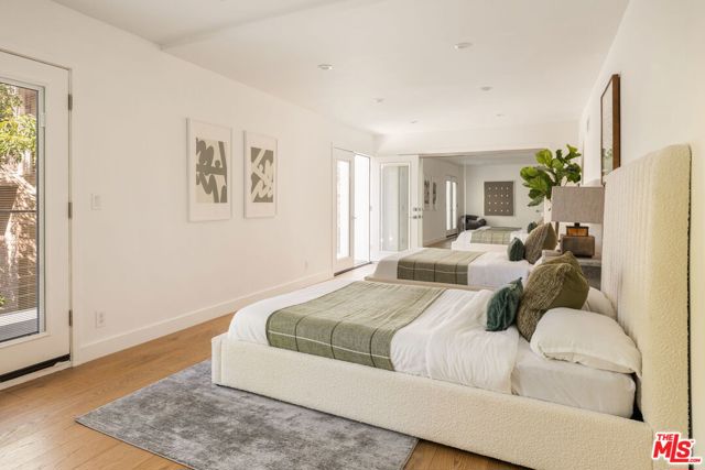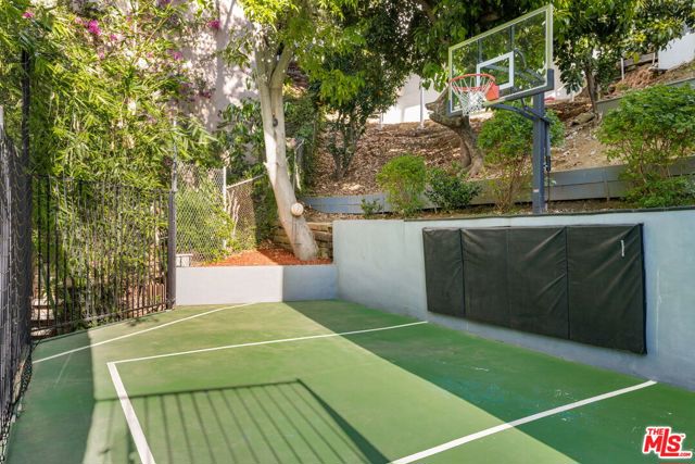 Perched in the heart of the Hollywood Hills, this beautifully remodeled contemporary home offers spectacular panoramic city views from nearly every room. A gated front courtyard creates a private arrival, while soaring ceilings, an open floor plan, and expansive walls of glass fill the home with natural light and frame the views beyond. Designed for comfortable living and easy entertaining, the main level features a great room with fireplace, dining area, and chef's kitchen with quartz countertops, eat-in island, premium appliances, and built-in wine refrigerator. The home includes 6 bedrooms and 6.5 bathrooms, highlighted by two primary suites with walk-in closets, fireplaces, and marble bathrooms. One suite also features dual vanities and a freestanding soaking tub. Multiple balconies and terraces provide seamless indoor-outdoor flow, with outdoor spaces that include a putting green, sport court, orchard, lawn, and a sprawling approximately 1,600-square-foot deck. A spacious bonus/recreation room offers flexible use for a gym, office, or media room. Additional highlights include a guest suite with separate entrance, living room, kitchenette, bedroom and bath, ample storage, updated systems, newer roof and windows. Ideally located minutes from Universal Studios, CityWalk, and nearby shopping and dining.