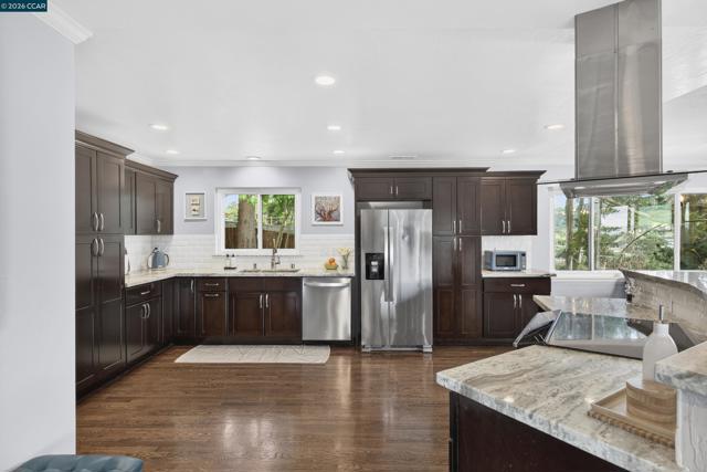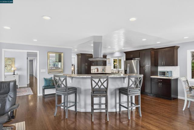 Homes today just aren’t built like they used to be, but at 73 Pine Hill Drive in El Sobrante, you truly can have it all—privacy, space, and views—all on one level. This single-level ranch-style home offers nearly 2,400 square feet of living space with a layout that flows effortlessly. The open-concept design connects your main living areas to a beautifully updated kitchen, featuring stone countertops, rich cabinetry, stainless steel appliances, and bar seating—perfect for everyday living and entertaining. Step outside to a custom-built deck overlooking the rolling El Sobrante hills—an ideal setting for relaxing, hosting, or taking in the view. Throughout the home, you’ll find original hardwood floors, recessed lighting, and an abundance of natural light. With four bedrooms and two updated bathrooms, including a spacious primary suite with a walk-in shower, this home offers both comfort and functionality. Situated on nearly an acre, the property features usable front and backyard space, a private drive, RV parking, an attached garage, and a hot tub—creating the perfect balance of privacy and convenience. Don’t miss your opportunity to own one of El Sobrante’s most unique homes—where lifestyle, space, and views truly come together.