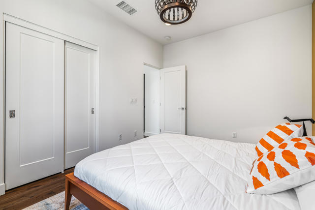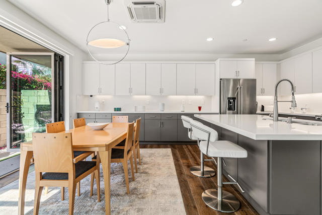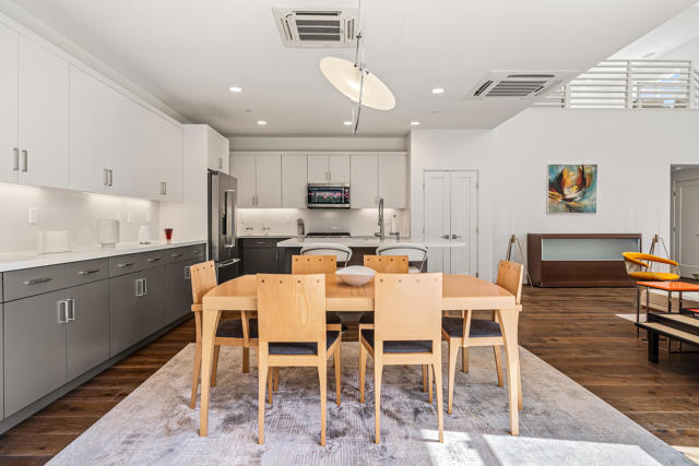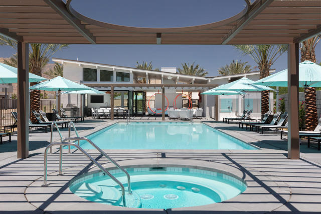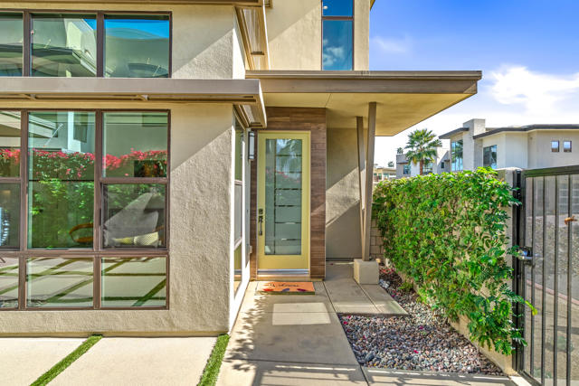 Where the cool people live...VIBE!Step into elevated desert living with this highly upgraded Plan 2 residence in the iconic Vibe community. Framed by breathtaking San Jacinto Mountain views and peek-a-boo vistas of the Bob Hope hillside in Southridge, this home delivers style, sophistication, and that unmistakable Palm Springs energy.Inside, every detail has been curated. Dakota flooring flows seamlessly through the main living areas and stairs, while Calacatta porcelain tile elevates the bathrooms and laundry space. The expanded chef's kitchen features soft-close cabinetry, sleek solid-surface countertops, and a designer backsplash--perfectly paired with recessed lighting and dimmers throughout.Designed for modern living and effortless entertaining:Wall-to-wall glass and fold-out patio doors create a true indoor-outdoor experiencePre-wired audio, TV smurf loops, and upgraded lighting enhance functionalityElectronic blinds provide instant comfort, privacy, and energy efficiencyRetreat to a luxurious primary suite featuring designer wallpaper, a frameless floor-to-ceiling shower, and polished chrome finishes. Guests will appreciate the upgraded walk-in shower and refined finishes throughout.Enjoy multiple outdoor spaces including a private front courtyard ideal for evening gatherings, plus a spacious balcony off the primary suite--your own serene escape under the desert sky.And the ultimate bonus: owned solar, delivering modern efficiency with long-term value.This is more than a home--it's a lifestyle. Welcome to Vibe.