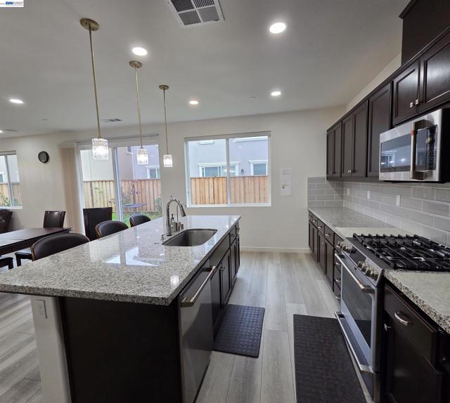 Cielo Community. For GPS/Directions please use: Sand Creek Rd and Heidorn Ranch Rd intersection and drive into the gated community. Please don't miss to check the amazing school ratings. Welcome to this stunning EAST facing, one-year-old beautiful home. The property offers wide entry, 4 bedrooms and 3 full baths with a modern open-concept floor plan, including a bedroom and full bath on the main level—flexibility for guests or extended family. Located in the highly desirable Brentwood's TOP schools area (see the school ratings) and just 10 minutes from BART, this property checks all the boxes for first time Buyers and Investors -- strong tenant demands are met here. Owned solar keeps operating costs low, while the community amenities such as two parks, a clubhouse, and a swimming pool add long-term value. Property comes with Washer, Dryer, Refrigerator, Microwave, Gas cooking range, water Softener and Filter. An excellent opportunity for both investors and first-time buyers seeking appreciation and stable rental income.