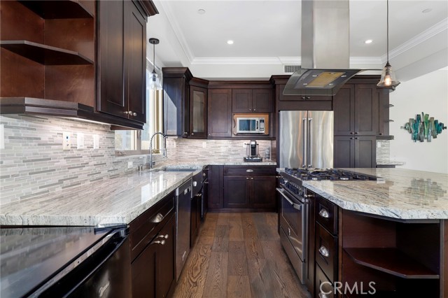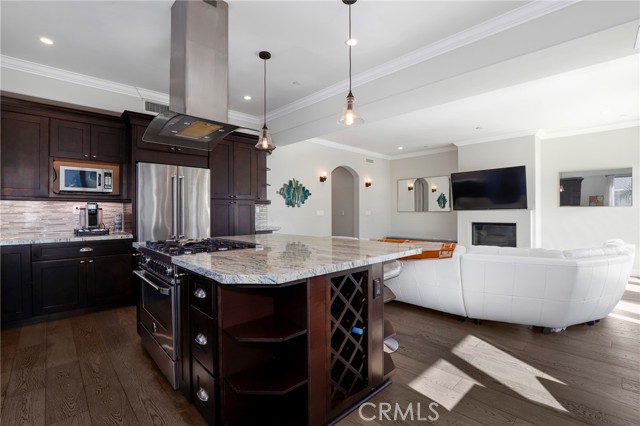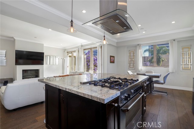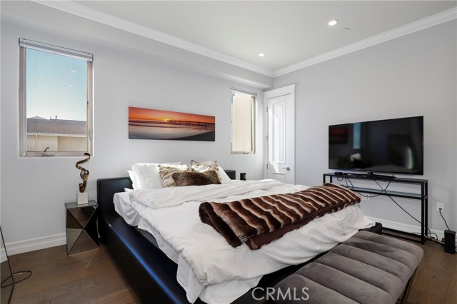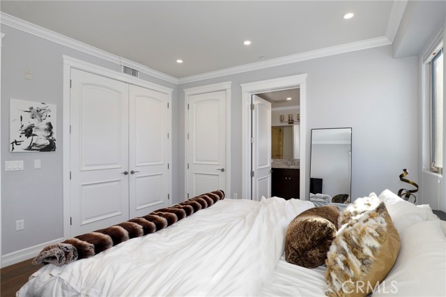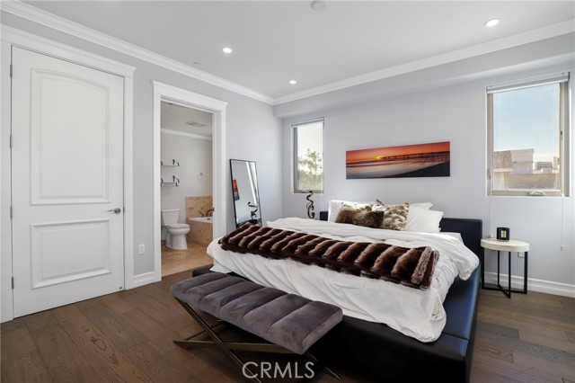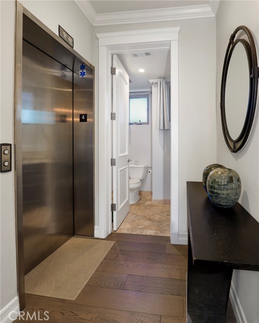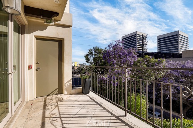 Experience elevated living in this stunning 2016-built luxury condo in the heart of Westwood. This front-facing 2-bedroom, 2.5-bath residence spans approximately 1,350 sq ft and offers a rare level of privacy and sophistication, highlighted by a private elevator that opens directly into the unit—an exclusive feature typically reserved for penthouses. The expansive living room provides an open-concept layout filled with natural light, rich hardwood floors, recessed lighting, and elegant crown molding throughout. The area also features a decorative fireplace and flows seamlessly to a balcony through double French doors, offering peaceful palm tree views. The kitchen is designed to impress, showcasing a premium Bertazzoni stainless steel appliance oven and hood, marble countertops, and a large center island with ample prep space—perfect for entertaining. The spacious primary suite is a true retreat, offering three closets and a luxurious ensuite bathroom complete with a standalone soaking tub, glass-enclosed shower, granite vanity, and travertine finishes. The second bedroom also features its own ensuite bath, along with crown molding and recessed lighting. Additional highlights include in-unit laundry, a Google Nest Thermostat, and a new tankless water heater. Enjoy the convenience of no common walls, an in-unit trash chute, two parking spaces, and two storage units—including an oversized private storage room. Located just moments from UCLA, Westwood Village, Beverly Hills, Century City, Brentwood, and Santa Monica—this home offers the perfect blend of luxury, privacy, and unbeatable Westside access.