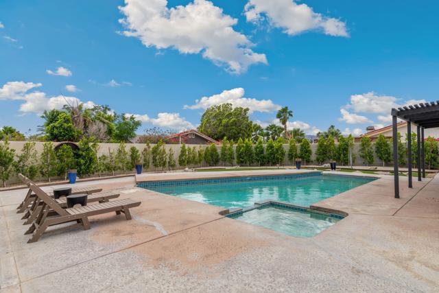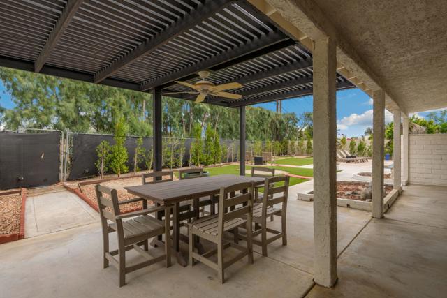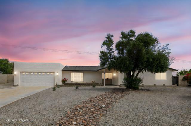 Tucked away at the end of a quiet cul-de-sac on an oversized lot, this spacious 4-bedroom, 2-bath home captures beautiful views of the San Jacinto Mountains and offers a comfortable layout designed for easy living. The front and backyard both enjoy scenic mountain backdrops, with select interior rooms also showcasing the stunning desert landscape. The welcoming living room features a cozy gas fireplace and opens to the backyard, creating a seamless indoor-outdoor flow ideal for enjoying the Palm Springs lifestyle. A formal dining room provides a great space for hosting family and friends. The kitchen offers ample cabinetry and stainless steel appliances, making everyday living both convenient and functional. The primary suite includes direct access to the backyard from both the bedroom and bathroom, offering a private retreat with easy outdoor access. The expansive backyard features a large covered patio and multiple areas for relaxing or entertaining. Additional highlights include a two-car garage, an extended driveway with plenty of additional parking, and dedicated space for RV parking. The property sits on land you own--no land lease--making it an excellent opportunity to move right in or personalize and elevate the home even further.