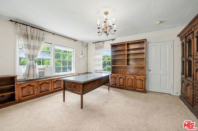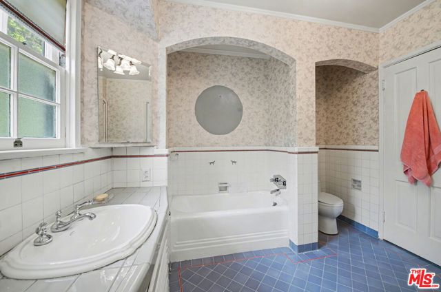 Available for the first time in many years and situated on a huge lot in the Prime West-End of the Beverly Hills Flats, this warm and inviting Traditional residence remains true to its vintage 1937 architectural roots. Featured here are hardwood floors, rich wood paneling, crown moldings, chair railing, French windows and doors and numerous built-ins. This home is bright and cheerful. The formal entry is graced by a sweeping staircase. The living room, with its brick-clad fireplace and large windows, takes in leafy views of both the front and back yards. The spacious formal dining room is great for entertaining and the charming breakfast room offers a cozy spot for everyday dining. The kitchen has been updated and opens to a laundry room and guest bedroom suite with bathroom. The expansive wood-paneled family room has a fireplace and French doors leading to the backyard. A powder bath completes the first floor. Upstairs find four well-sized bedrooms including the primary suite with its updated bathroom. The backyard is enormous and private-feeling with its brick patio, its sparkling pool, its tall privacy hedges, its old-growth trees and grassy expanses. There is also plenty of hard-scape space for a sports court and for extra parking. A two-car garage and an adjacent storage room complete the backyard space. Ripe for renovation or redevelopment, 608 Trenton Drive offers tremendous potential to its new owner. All this in close proximity to all the fine shopping, dining and services that Beverly Hills has to offer.