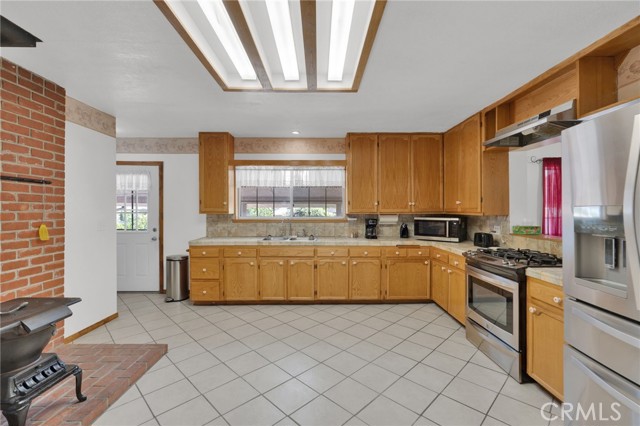 Welcome to this truly unique, well maintained home in the Barstow area, proudly owned by its original owner. Offering an impressive layout and generous living space, this property features approximately 2,257 sq ft on the main level plus an additional 1,054 sq ft basement, an uncommon and highly desirable feature in the area, along with a 462 sq ft garage. The main floor includes 3 spacious bedrooms and 2 bathrooms, including a large primary suite with dual sinks and a walk-in shower. Enjoy a huge kitchen complete with a charming wood-burning stove, perfect for added warmth and character, along with a separate formal dining room ideal for gatherings. The lower-level basement expands the home’s versatility, offering 3 additional rooms, a large living space, and private exterior access; perfect for extended living, guests, or creative use. This home has been thoughtfully updated with a new furnace, new swamp cooler, new water heater, and new front windows. The kitchen comes equipped with a stove and refrigerator, and the home also includes a newer washer and dryer, making it truly move-in ready. Situated on a property with desert landscaping in the front for low maintenance, this one of a kind home combines space, functionality, and value in a way that’s hard to find.