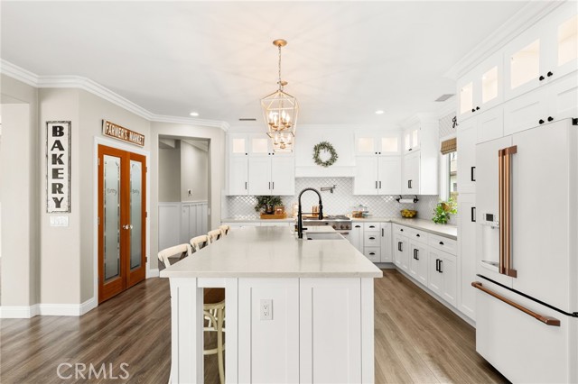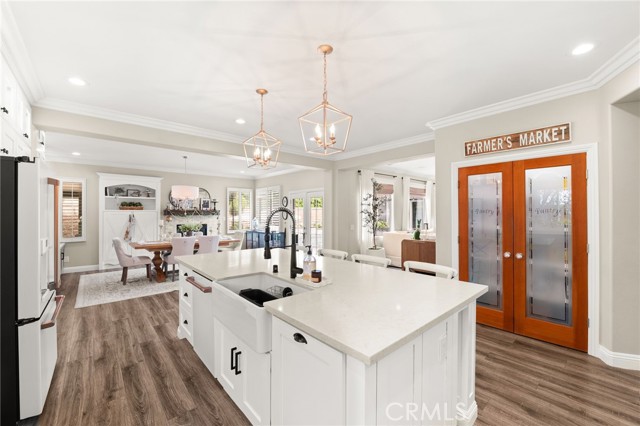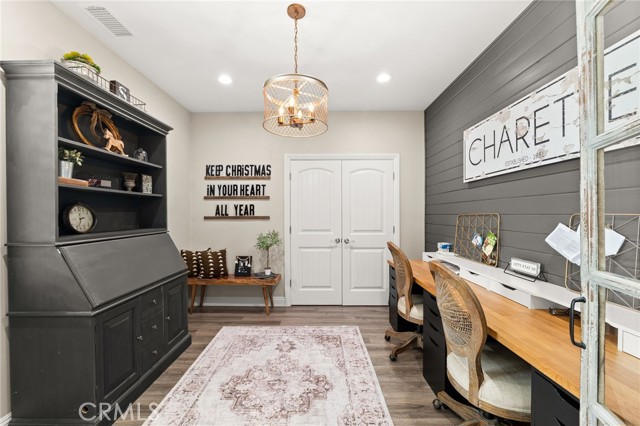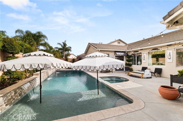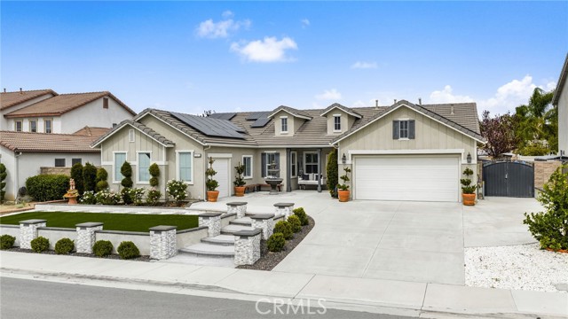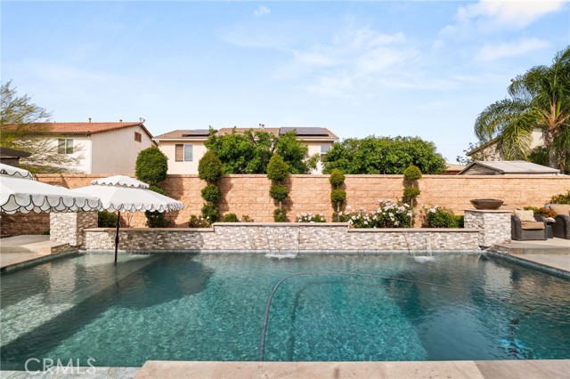 Welcome to 12492 Poinsetta Drive, a beautifully updated single-story home offering a seamless blend of modern design and everyday functionality. This move-in ready residence features an open-concept layout with wide-plank flooring, custom finishes, and abundant natural light throughout. The remodeled kitchen serves as the centerpiece, showcasing custom cabinetry, quartz countertops, designer lighting, and an oversized island that opens directly to the main living and dining areas—ideal for both entertaining and daily living. The spacious primary suite provides a private retreat with an upgraded bathroom and thoughtful design details. Additional bedrooms and a dedicated office offer flexibility for a variety of living needs. Step outside to a resort-style backyard featuring a custom pool and spa, covered outdoor pavilion with built-in BBQ, bar seating, and multiple areas designed for relaxing or entertaining. Located in a desirable Riverside neighborhood, this home offers comfort, style, and true indoor-outdoor living.