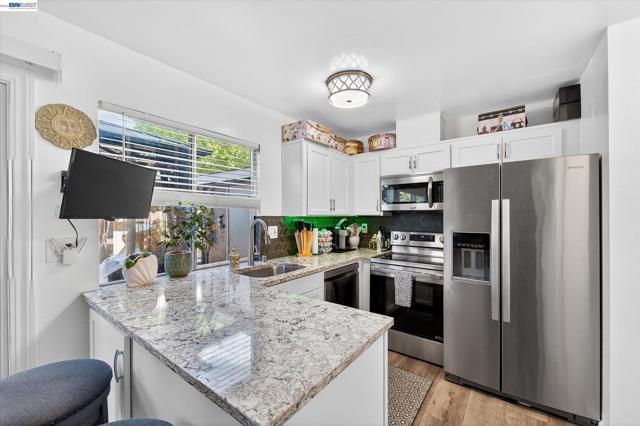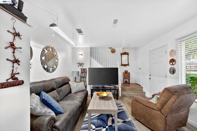Looking for a move-in-ready home in Pleasanton? Located in the highly sought-after Las Positas Gardens community. This beautifully maintained townhouse offering the perfect blend of modern convenience and timeless charm. This 3-bedroom, 1.5-bathroom home is ideal for first-time buyers, commuters, and families seeking a top-tier California lifestyle. The upper level hosts three spacious bedrooms and ample closet storage, centered around a full bathroom. The main level features an expansive window that floods the space with natural light, highlighting the stylish, modern laminate wood flooring that extends throughout both the lower and upper levels. The heart of the home is the functional kitchen, offering updated cabinetry, quartz counter tops, stainless steel appliances and dining area. Step directly outside to your private, fenced patio with storage area, an ideal retreat summer evenings. The community features lush greenbelts and a playground. Unbeatable location for commuters and families alike. Enjoy close proximity to top rated Pleasanton schools. Residents benefit from easy access to I 580, I 680, BART, Stoneridge Mall, and Hacienda Crossings. Move in ready and perfectly positioned. Don’t miss this rare East Bay opportunity!