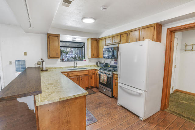 The fixer you've been dreaming about is here. A rare opportunity to create your own mountain retreat masterpiece. This home features an open-concept living area with a wood-burning fireplace, seamlessly connecting to a spacious kitchen with an eating bar, ample storage, and plenty of room to prepare anything from a quick meal to hosting lively gatherings. Entertain with ease in the formal dining room, which offers direct access to a forest-like backyard complete with outbuildings, garden space, and a patio - an ideal setting for outdoor enjoyment.The primary en-suite is thoughtfully tucked away on the main level that includes a spacious bathroom and a private patio entrance. Wake up to the sounds of nature and enjoy your morning coffee surrounded by trees in a peaceful natural setting. Upstairs, you'll find an extra-large family room filled with natural light--perfect for movie nights, cozy evenings in, or additional sleeping space for guests eager to hit the slopes early.With three full bathrooms, there's no need to compete for space, making extended visits from friends and family comfortable and convenient. At its core, this property is a true DIY dream: a blank canvas ready for your vision and creativity. Showcase your designer style while creating lasting memories, all while enjoying the beauty of nature right in your own backyard.Additional features include a two-car garage, solar panels, wood shed and a three-bedroom, three-bath layout. While the property does need updating, the potential is undeniable. Located just minutes from the slopes, a mile or two from parks, and lake access just down the street, this home offers an unbeatable setting for your future mountain escape.