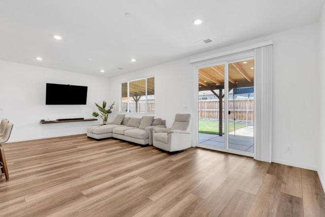This beautifully maintained single-story home, built just three years ago, features a bright and open-concept layout with soaring 9-foot ceilings that enhance its spacious feel. The thoughtfully designed floorplan includes generously sized bedrooms, walk in closet and spacious bathrooms, providing ultimate comfort throughout. The kitchen is a delight with quartz countertops, ample cabinet space and pantry, a large center island and sink, plus a breakfast bar perfect for casual dining. The home is equipped with energy-efficient upgrades, including a solar energy system, tankless water heater, energy-efficient LED recessed lighting and smart thermostat. Additional highlights include stylish Sterling Oak plank flooring, a dedicated laundry room, and a finished, insulated garage. The newly landscaped backyard offers a covered patio and a smart, water-conserving irrigation system with weather-based controls, perfect for easy, low-maintenance outdoor living. Conveniently located within walking distance of Walnut Grove School (K8) and a brand-new community park, this home combines comfort, efficiency, and modern living in a welcoming neighborhood.