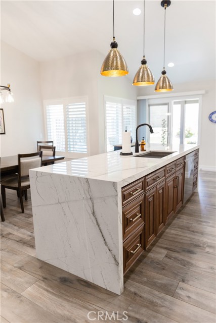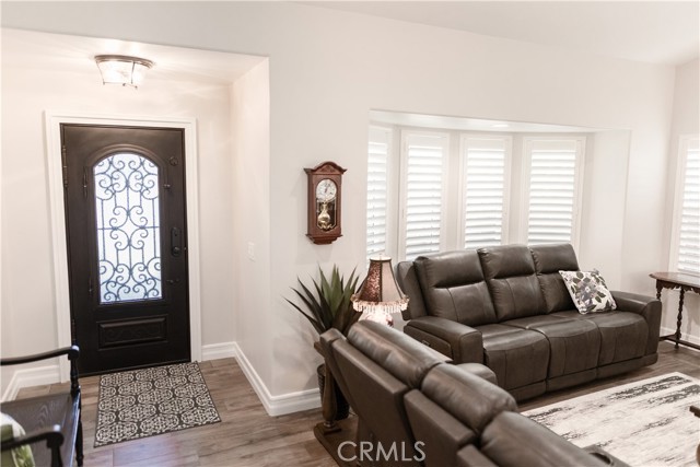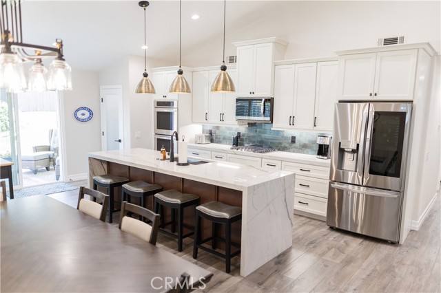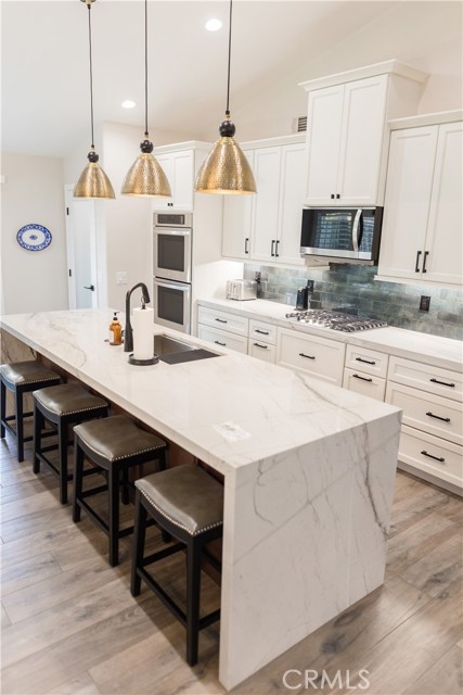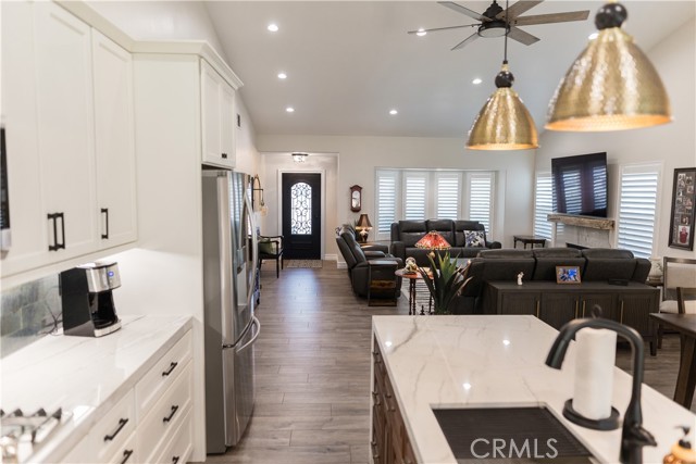 Unbelievable remodeled one story Orangecrest home. This three bedroom, two bath home has undergone a remodel from top to bottom that shows tens of thousands of dollars of upgrades deigned and presented with perfection. Just driving by one can see the detail invested in this home. The great room has a vaulted ceiling new kitchen with granite island, built in double oven and pantry. New doors have been installed throughout, new custom cabinetry in kitchen and baths, all new high end flooring and the walls and ceiling throughout have been plastered with French Provence/Parisian texture that is stunning. The fireplace includes a custom mantle of aged lumber which sets off the exceptional build of the home. Baths have been built with beautiful stone surfaces and custom glass. The home has a newer forced air and heat system with all new ducting, a three car garage, hundreds of square feet of aluma-wood patio and has perfectly landscaped yards. The property is a block from the Orangecrest park, library and sports complex, and is close to shopping, schools, worship centers and access to both the 215 and 91 fwys.