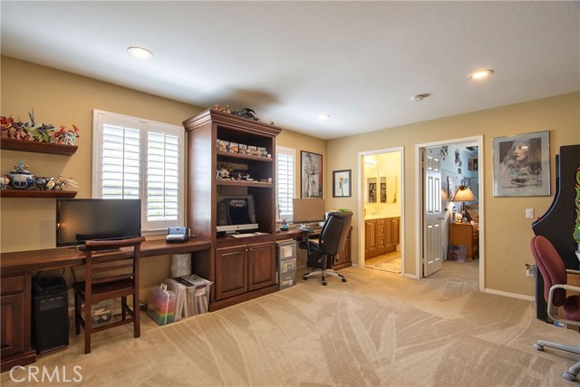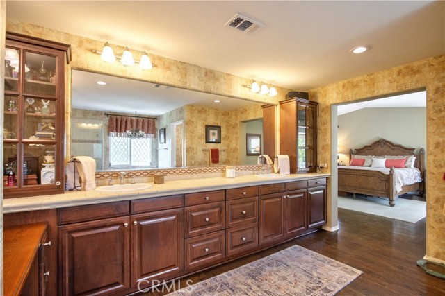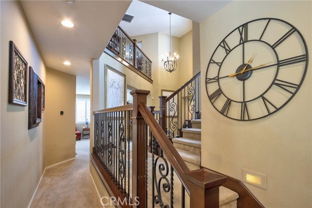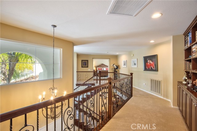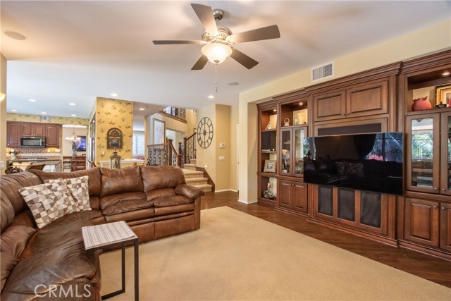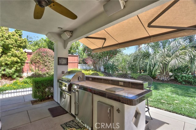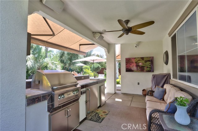Welcome Home to the Fairways! A Redhawk premier Gated Community surrounding the beautiful Redhawk Golf Course. Highly upgraded former model home representing the award winning Classics Plan 2 in the community. The home features over 3700 s.f. of living area, including 4 bedrooms plus a home office and 3 full bathrooms. Multi generational living is achieved with a full bedroom and bath on the main level secondary wing of the floor plan. The gourmet kitchen is a cooks delight with upgraded kitchen appliances including a GE Profile double oven, Bosch Silent dishwasher with matching kitchen cabinet fascia, KitchenAid microwave and upgraded GE Monogram 5-burner gas cooktop and GE Profile Refrigerator. The kitchen becomes the heart of the home and is flanked by the formal dining room and family room on each side. Beautifully appointed with granite counter tops and custom tiled backsplash. The dark fruitwood cabinets and stylish glass mullion cupboards are centered by a large white cabinet island for a stunning finish. Relax and enjoy the cool So. Temecula breezes on the oversized balcony located off the primary bedroom with beautiful views to Redhawk Golf Course as well as Palomar and Pechanga mountains. Entertain in style in your custom landscaped back yard including a custom built outdoor kitchen bar area with travertine marble/granite countertops, commercial grade stainless steel Alfresco grill and a commercial Alfresco keg-sized outdoor refrigerator. The outdoor entertainment area is completed by an outdoor entertainment system for music and TV. In addition, the interior of the home is wired for surround sound in the Family Room and and has speakers throughout several rooms including the living room, master bedroom and master bedroom retreat. The home has been meticulously maintained and additional recent upgrades include installation of 2 new Lenox 4 ton A/C units as well as new exterior french doors at the family room and living room and a whole house fan. Ample storage in garage and potential for a wine cellar option. Close to shopping, schools and Temecula Wine Country.