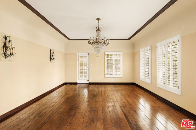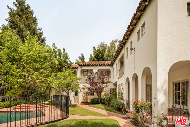 Offered for the first time in over 50 years, this storied Hancock Park estate presents a rare and extraordinary opportunity to reimagine a true classic. Set well back from one of the neighborhood's most coveted streets, the long gated driveway, sprawling motor court, and lush mature landscaping create an immediate sense of arrival and privacy. Inside, the bones are simply breathtaking. A stunning winding staircase with hand-wrought iron detail anchors a soaring entry foyer, while grand formal rooms, a dramatic wood-paneled library, beamed ceilings, multiple fireplaces, and arched windows showcase a level of craftsmanship rarely found today. This is a true blank canvas ready for a visionary buyer to restore and make their own. The grounds deliver with a sparkling pool and spa, covered patios, and lush gardens perfect for entertaining. Additional highlights include a private elevator, an attached ADU with its own separate entrance, a secondary kitchen, and an oversized 4-car garage. With two full floors and a floorplan of extraordinary scale and flexibility, this is Hancock Park estate living at its finest. A once-in-a-generation opportunity. Come write the next chapter.