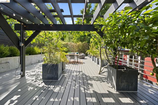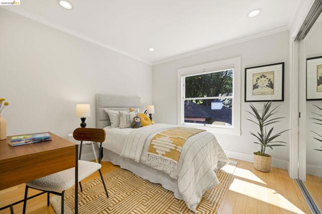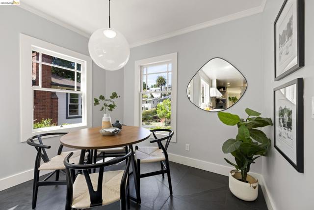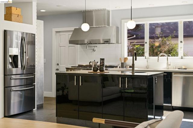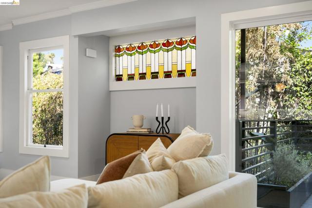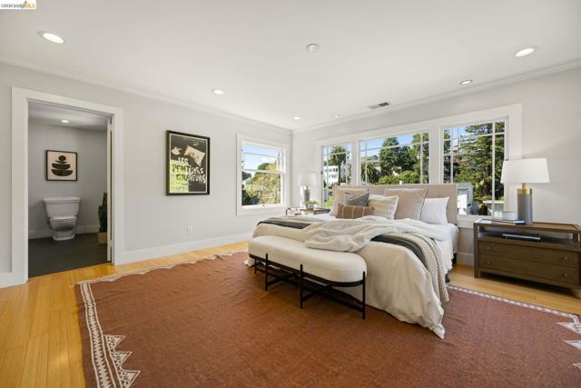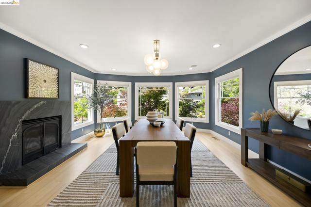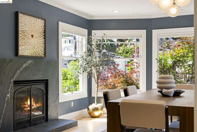 Contemporary Farmhouse Reimagined in the Heart of Crocker Highlands. Perched above the street, this rebuilt contemporary farmhouse blends classic character w/ modern design & thoughtful updates throughout. Expanded & re-engineered for enhanced flow & functionality, the home features light-filled interiors w/ an open great room connecting to a chef’s kitchen w/ high-end appliances, dual sinks, large island & ample storage—ideal for daily living & entertaining. Formal dining w/ bay windows & fireplace adds warmth & architectural presence. A rear living room opens to a level patio w/ hot tub & turf for seamless indoor-outdoor living, while an expansive upper-level view deck offers sweeping neighborhood views. Upstairs offers 4 bedrooms, including a spacious primary suite w/ balcony, a walk-in closet & spa-like bath, plus a second en suite & a full hall bath. Lower level includes a 5th bedroom or office w/ full bath & private entrance. Additional features include 2 parking spaces, including a 1-car garage w/ EV charger, solar, Tesla Powerwall, new roof & whole-house water filtration. Near award-winning Crocker Highlands Elementary, Lakeshore Ave shops, dining, Lake Merritt & easy Bay Bridge access.