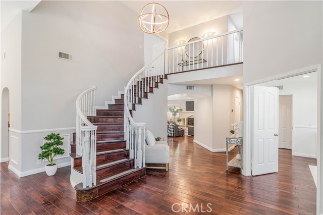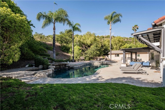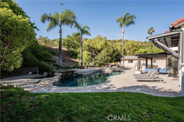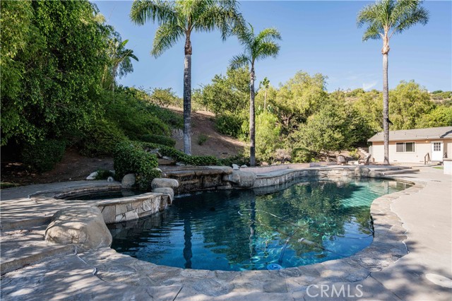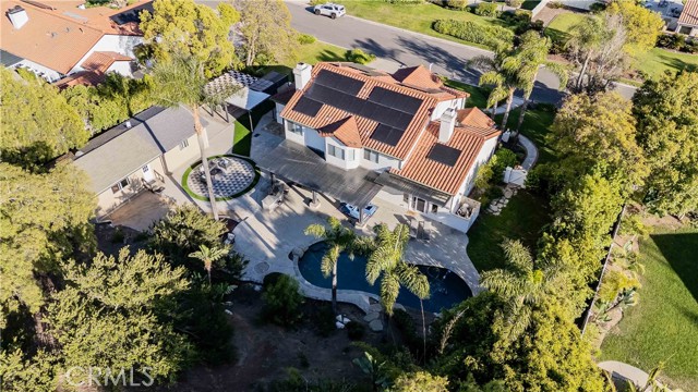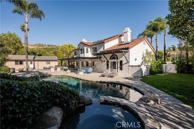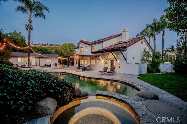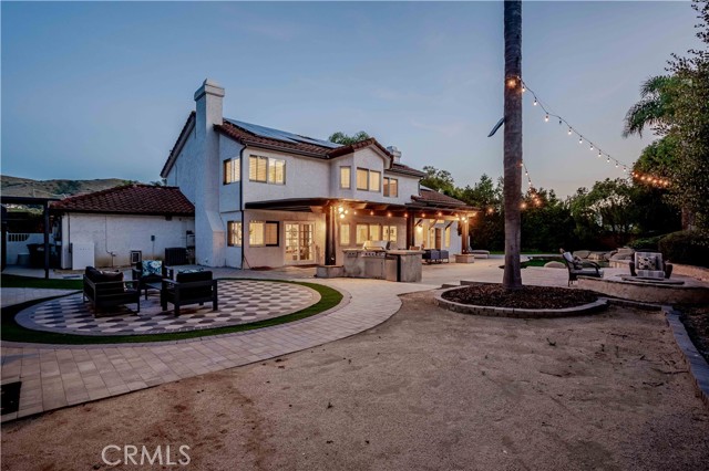 Beautiful Bridlewood home with detached independent studio, in-ground pebble pool and spa, with thoughtful modern upgrades nestled in the desirable Bridlewood community of Santa Rosa Valley, this stunning remodeled estate sits on a 1.45 acres land, offers privacy & quiet luxury, seamless indoor-outdoor living. This elegant two-story residence offers 3,080 sq. ft. of refined living space ideal for both relaxation and entertaining. A dramatic two-story foyer welcomes you with a soaring ceilings and a picturesque staircase. Upgrades include a brand new gorgeous wooden entry double-door, newly interior exterior paint, outdoor Security camera system, Halo water filtration throughout, Govee outdoor decorative lights, Leased solar panels with Tesla backup batteries and EV charger. The living and dining rooms share a double-sided fireplace capturing the view of pool/spa. The remodeled kitchen features Taj Mahal quarts countertops, stainless appliances, farmhouse sink, a large island, a walk-in pantry, breakfast bar and a cozy nook. Kitchen opens to the family room with a second fireplace and direct yard access, creating the perfect great-room environment. A main-floor 4th bedroom sits adjacent to a remodeled bathroom, and a bonus room added a space for office use or nanny's room. Upstairs, the primary suite offers vaulted ceilings, sitting area, a soaking tub, steam shower, dual vanities, and a large walk-in closet. Two additional bedrooms and another remodeled bath complete the upper level. The resort style grounds include the highly desirable detached 42'x17' studio with separate entry provides excellent value and flexibility, additional highlights: backyard offers covered patios and sitting areas, firepit, BBQ island ideal for entertaining, biking/hiking and horse trails in the community added value to this phenomenal location location neighborhood. This dream home has it all.