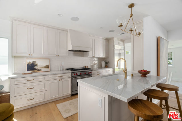 Tucked into one of Mar Vista's most sought-after pockets, this stunning 2026 rebuild on coveted Lake Street offers a rare blend of elevated design, thoughtful architecture, and true neighborhood charm. Brought to life by renown Anchorstone Properties and thoughtfully designed by local talent Joanna Leon, the home reflects a reputation for quality, elegance, and intentional living. Known for its wide lots and gently curved street, Lake Street delivers an estate-like presence, where each arrival home is met with a sense of space, privacy, and sweeping views of the Mar Vista hills. Rebuilt from the ground up in 2026, this exceptional residence showcases timeless designer finishes and meticulous craftsmanship. A warm and inviting formal sitting room welcomes you in, effortlessly flowing into the heart of the home anchored by a stunning double-sided fireplace that beautifully connects the spaces. The sunken dining and family rooms are architecturally curated to create both character and intimacy, offering a cozy yet refined setting for everyday living and entertaining. Seamless indoor-outdoor flow leads to a lush backyard oasis, where mature landscaping, vibrant florals, and thoughtfully designed spaces create a true escape from city life. Enjoy al fresco dining just off the kitchen, or unwind in the perfectly curated outdoor lounge framed by blooming bougainvillea that becomes an idyllic setting you'll never want to leave. The lower level features two generously sized bedrooms, a stylish powder room, and a spacious hall bathroom. Upstairs, discover a well-appointed en suite guest bedroom, a charming nursery or flex space, and an elegant primary suite complete with a walk-in closet and spa-inspired bath. Throughout the home, elevated finishes define every space from marble-clad showers and floors to high-end lighting, Wolf/Subzero appliances and fixture selections. Every detail has been carefully curated to feel luxurious and refined, delivering a home that is as functional as it is beautiful. Positioned near the future transformation of the Santa Monica Airport, slated to close in 2028 and evolve into what many are calling "Central Park LA," this location offers not only incredible lifestyle appeal today, but remarkable long-term upside as one of the Westside's most exciting neighborhoods.