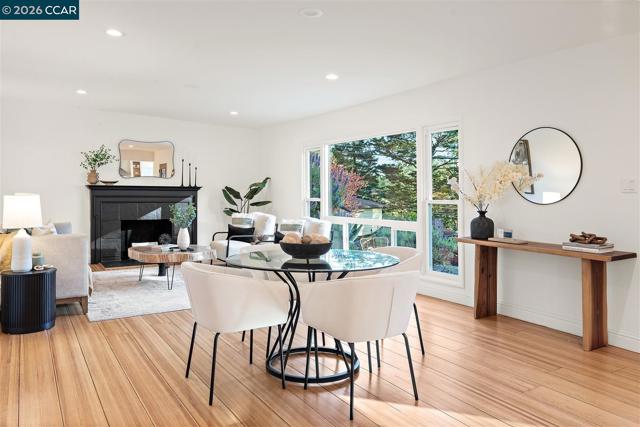 Welcome to Montclair living at its best, where a strong sense of community, and timeless design come together. Known for its vibrant village, beloved Saroni Halloween tradition, and neighbors, this is the kind of neighborhood that's hard to find. This updated home offers 3+ bedrooms, 2 bathrooms, and 1,607 square feet of light-filled living space. The inviting living room features a picture window and wood-burning fireplace, while the stylish updated kitchen includes quartz countertops, stainless steel appliances, a wine fridge, and a large island with seating. The bright primary bedroom offers two closets and a spa-inspired bath with dual vanities and a walk-in shower in the adjoining hallway. Two additional bedrooms, an updated hall bath, and a flexible bonus space with backyard access complete the interior. Outside, multiple terraced yard areas offer distinct spaces for entertaining, gardening, and relaxing, all with peekaboo hill views. Additional highlights include a two-car garage with EV charger, laundry,up dated lighting, and refinished hardwood floors. Move-in ready and designed for easy living. OPEN SAT & SUN