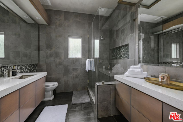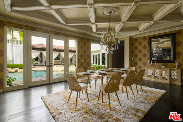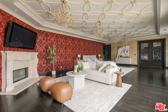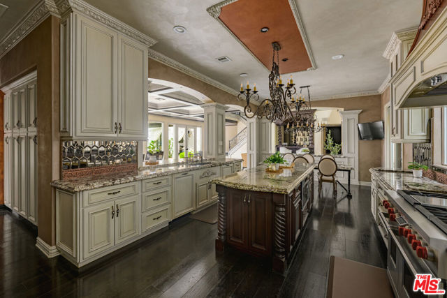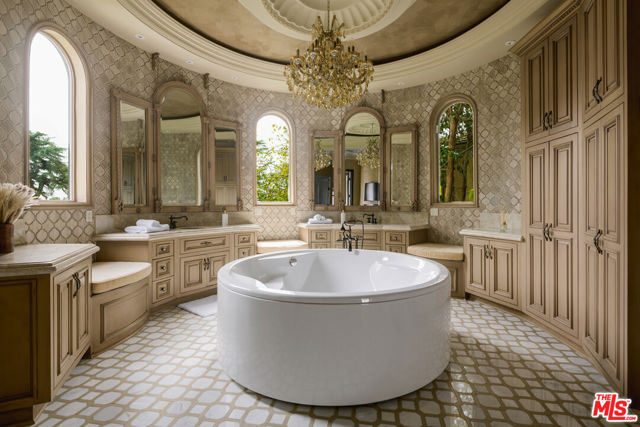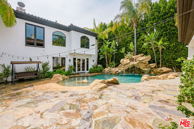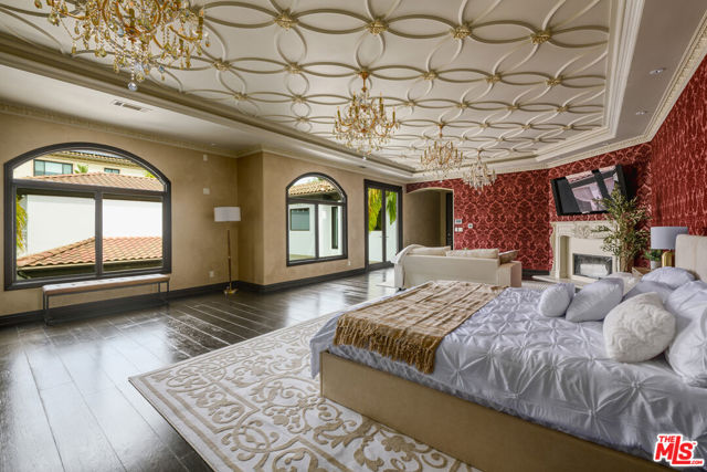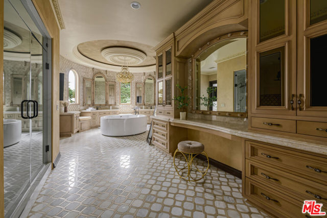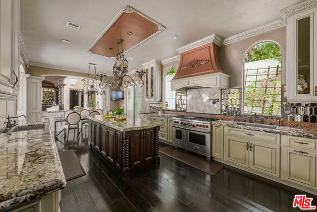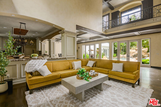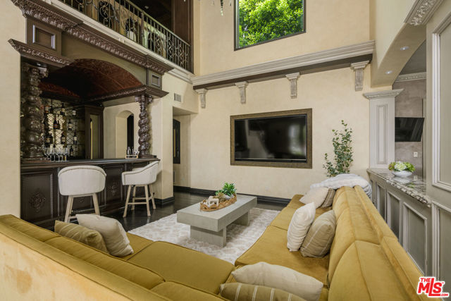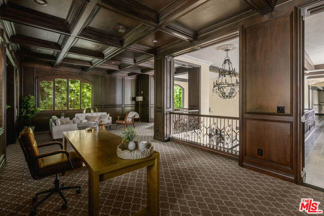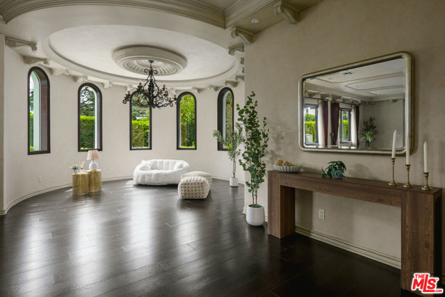 Set behind gates in prime Los Feliz this Mediterranean estate dazzles with beauty and grandeur, delivering endless space and a pool on expansive grounds. Sheltered from the street by high hedges and layered landscape, the stunning residence blends classic Spanish character with refined modern updates. Bathed in natural light, the home showcases signature coved ceilings, graceful archways, picture windows and tranquility. The estate spans approximately 9,633 sq ft with each space flowing effortlessly to the next which is grand yet intimate. A formal living room, anchored by a stately fireplace sits adjacent to the dining area, while the chef's kitchen with top-tier appliances and custom cabinetry flows seamlessly to the family room with 17 ft ceilings. A luxurious movie theater with private bar and top of the line sound system further impress while the wood paneled spacious office is both elegant and timeless. Six en-suite bedrooms are thoughtfully positioned with gorgeous baths including a primary suite of impressive scale and serenity. There is an additional bonus space to set up for a creative studio or home gym. The completely private backyard is a dream with sun-drenched saltwater pool w/spa and cascading waterfall. Large four car garage and off street parking for seven cars. You're moments from neighborhood favorites All Time, Little Dom's, Wilde's, Maru, Griffith Park trails and everything Los Feliz has to offer.
