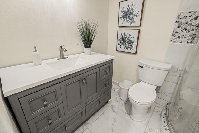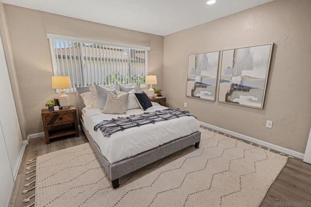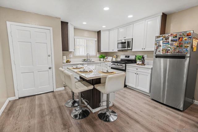 Beautiful single-story, end-unit condo offering the perfect blend of modern upgrades and privacy. Completely renovated from top to bottom by the seller, with no neighbors on one side and no direct frontage, it feels like a detached home—perfect for first-time buyers, investors, or those looking to downsize.The redesigned kitchen layout is a true centerpiece, featuring a center island, quartz countertops, and stainless steel appliances. Stylishly updated bathrooms, new luxury vinyl plank flooring, fresh paint, and a cozy living room with a fireplace opening to a private patio complete the space. Extras include an in-unit washer/dryer, window A/C, newer furnace, and a one-car garage with storage. Steps from the pool and spa, with nearby shopping, dining, and easy freeway access (CA-78). VA-approved and move-in ready—don’t miss out!