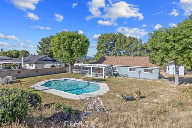 Incredibly Charming 3 bedroom PLUS OFFICE and 2 bath SINGLE STORY POOL HOME located on a fully fenced flag lot perched at the top of a lovely cul-de-sac street in the heart of Saugus with AMAZING VIEWS! The extended family room boasts a classic brick fireplace and opens to the lovely kitchen and dining area which overlook the sparkling swimming pool, covered patio and distant Mountain Views! The bright primary suite and en-suite bath offer plenty of natural light and privacy! There is a separate office off the 2 car attached garage that is perfect for a home gym, office or 4th potential bedroom overlooking the lovely front yard! This Incredible lot is more than 1 acre of mostly usable space that is fully fenced with plenty of room for RV parking and even a ADU! The spacious backyard offers a large pool with tons of room to play and entertain! The extra long gated driveway leads to the convenient 2 car garage! Just a short distance to Rosedell Elementary, Saugus High, and Bouquet Canyon and Golden Valley Road for streamlined freeway access, Central Park, tons of shopping, restaurants and more! NO HOA and NO MELLO ROOS this is a home you will cherish for years to come!