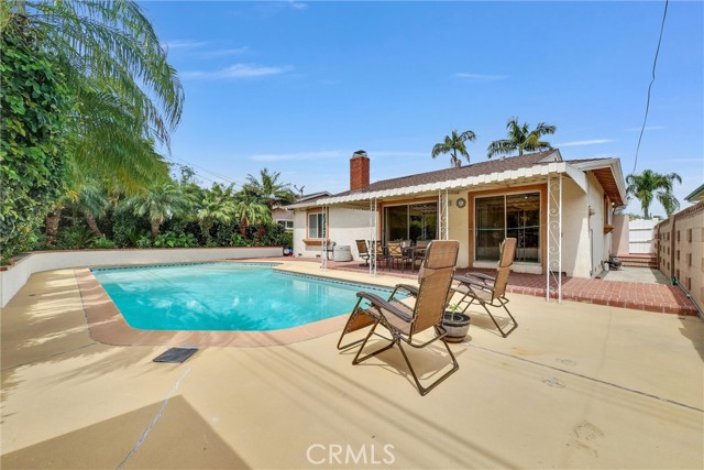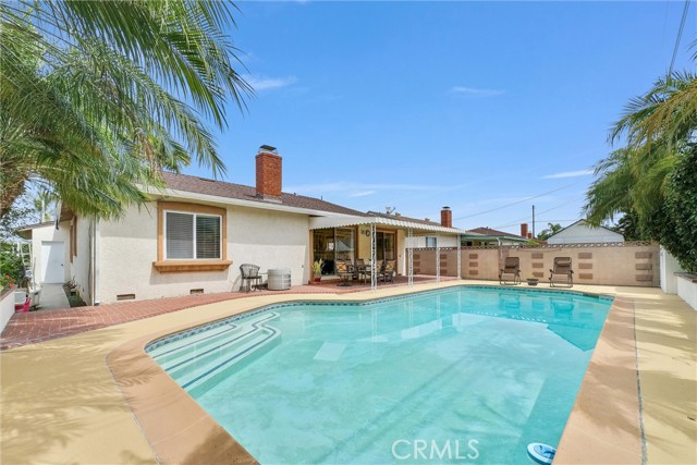 Amazing opportunity to make this spacious Whittier home your own! Step inside to a bright and inviting living room featuring a cozy fireplace and sliding glass doors that open to a private backyard with a sparkling pool, perfect for entertaining or relaxing. The spacious kitchen offers abundant cabinet space, a built in oven and stovetop, and flows seamlessly into the dining area, with elegant French doors connecting to the living room for an open and functional layout.The home features 3 generously sized bedrooms and 2 well appointed bathrooms one with dual sinks and a jetted tub. Additional highlights include central heating and air conditioning, a large indoor laundry room, and a two car attached garage with built in cabinets and durable tile flooring.The backyard is a true retreat, complete with a sparkling pool, mature palm trees, and a covered patio ideal for outdoor gatherings year round. Major upgrades include a newer roof, plumbing, and sewer system, all redone approximately 2.5 years ago, providing peace of mind for years to come.