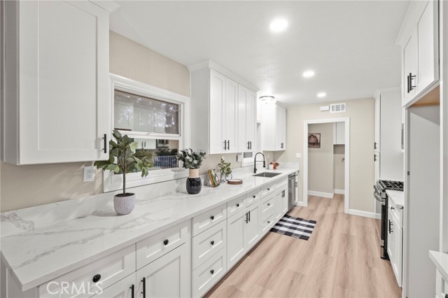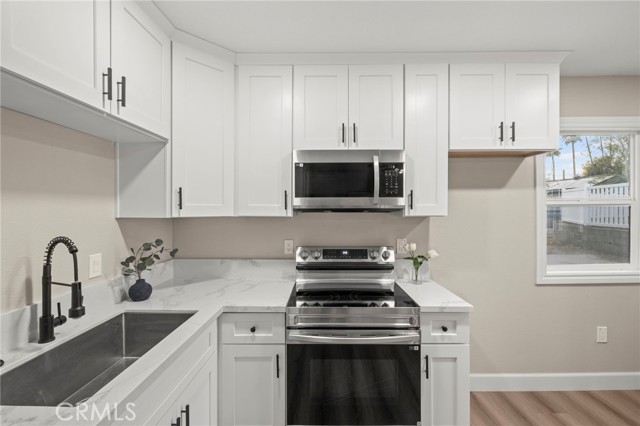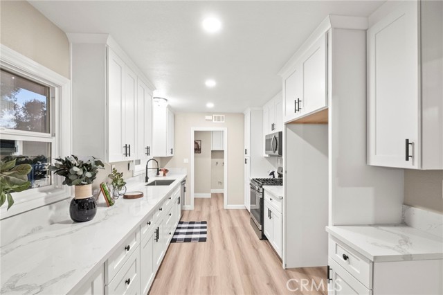 Completely reimagined from top to bottom, this 2,050 square foot home with a detached ADU and OWNED SOLAR sits on an expansive 20,000 square foot lot with RV Parking and sweeping mountain views, and a level of renovation rarely seen in the area. Every major system has already been handled. Brand new plumbing and electrical throughout. New HVAC system, including A/C and furnace. Newer roof. New dual-pane windows and new vinyl fencing have also been installed. This is not just a cosmetic flip. The interior has been opened up and modernized with beautiful luxury vinyl plank flooring, recessed lighting, and a clean, functional layout that flows naturally from living to dining to kitchen. The kitchen has been fully rebuilt with new cabinetry, countertops, and appliances, creating a true centerpiece for the home. The 20,000 square foot lot offers mostly usable space, perfect for adding a workshop or pool, with privacy and unobstructed mountain views from the rear. There is plenty of room for expansion, outdoor living, or simply enjoying space that most properties in this price range do not offer. In addition to the main residence, there is a fully detached 1-bedroom, 1-bathroom ADU that has been taken down to the studs and completely rebuilt. The ADU includes a full kitchen with a full-size stove and is equipped with two new mini split systems for efficient heating and cooling, making it ideal for rental income, multi-generational living, or a private guest suite. This is a turnkey property with scale, flexibility, and real upside. Properties with this level of renovation, lot size, and ADU setup do not come up often.
