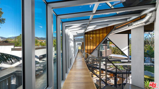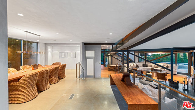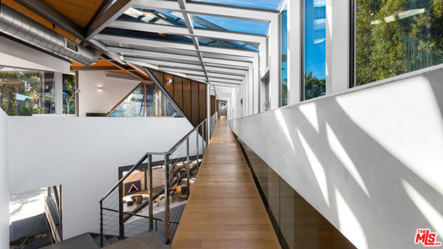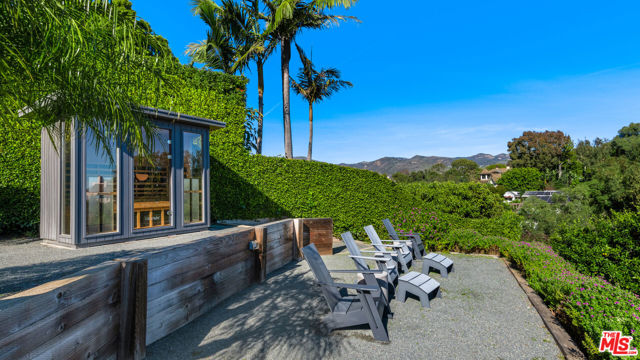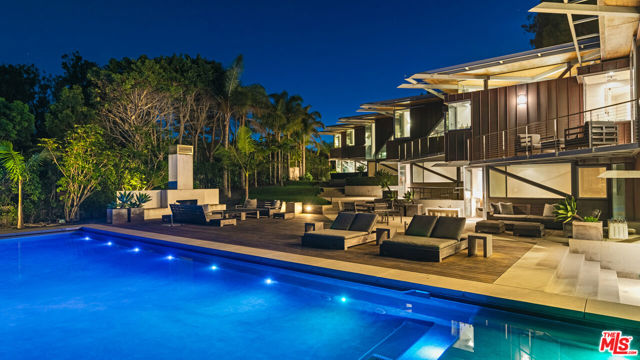 Ocean views, lush natural light, and dramatic angles animate the spacious interiors of this spectacular architectural estate. Designed by renowned architect Bart Prince in a series of interconnected modules, the home follows the contours of a gently terraced gated property of over an acre. With a guest house, pool, expansive landscaped grounds, and Riviera 3 beach key, this singular residence is an entirely original Point Dume retreat. The generous use of structural steel, soaring ceilings, walls of glass, polished concrete floors, and lustrous wood create welcoming spaces that seem to erase the boundary between indoors and out. Contemporary lines and exceptional layout provide settings for comfortable living and inspired entertaining. Two living rooms, a family room, and a dining room with a fireplace all offer tantalizing views of the very private grounds, where patios and gardens suggest congenial gatherings, barbecues, and undisturbed relaxation. The kitchen is a majestic achievement, with maple floors, granite countertops, top-of-the-line built-in appliances, a large island with bar seating, a built-in desk, and a butler's pantry / catering kitchen with additional appliances and a door to the side yard. An en-suite bedroom/gym/office with backyard and pool views completes the main floor. On the upper floor, where rooms are connected by a long catwalk, there is an ocean-view office with a fireplace, plus three en-suite bedrooms, including the primary. This lavish private getaway has very high ceilings and stunning pool and ocean views, plus walk-in closets and a sublime ocean-view bathroom. In addition to the main house, there is a one-bedroom guest house with a living room and a full kitchen. At the front of the house, there is a lush, private yard with ample space for relaxing and entertaining. The grand-scale ocean-view backyard offers a variety of settings for outdoor dining and lounging, including a covered dining deck, an outdoor living room, a large fireplace, lawn, sauna, large swimming pool, and ocean-view pathways that meander among a fruit orchard with private steps that descend to the beach below. The gated property is served by two driveways, one leading to the four connected, glass-door garage bays, one with a full bath. Additional features include seven-zone climate control and air conditioning, heated concrete floors, and security system. This is a remarkable architectural estate of bold design in a marvelous setting.