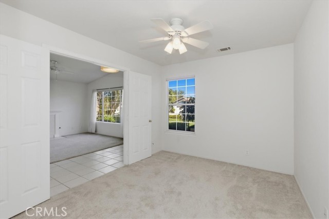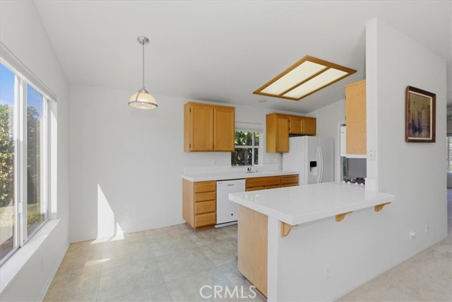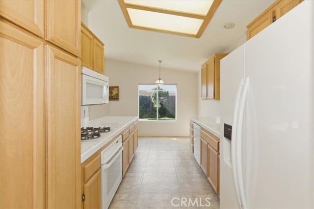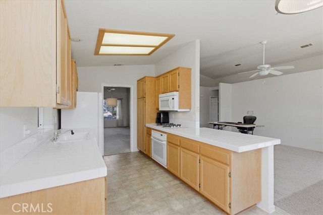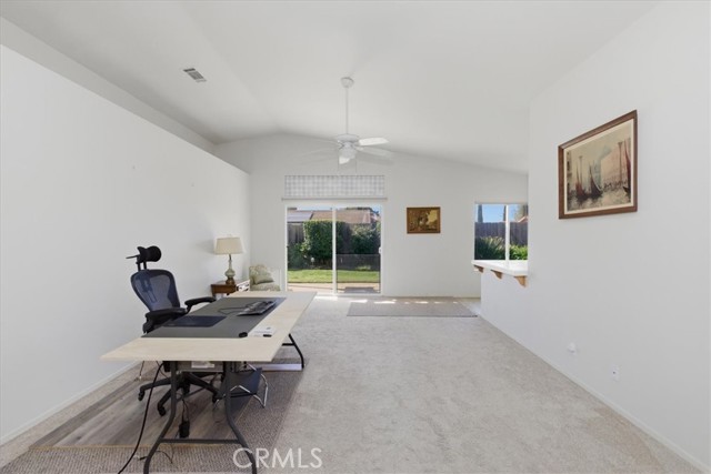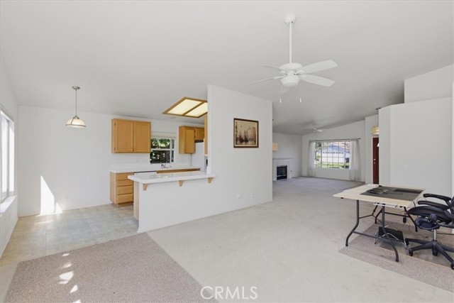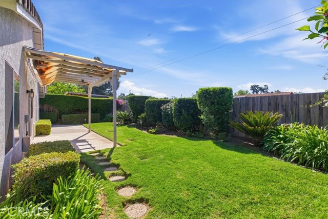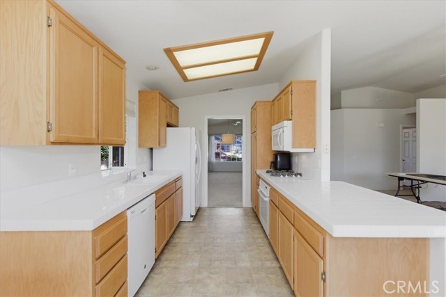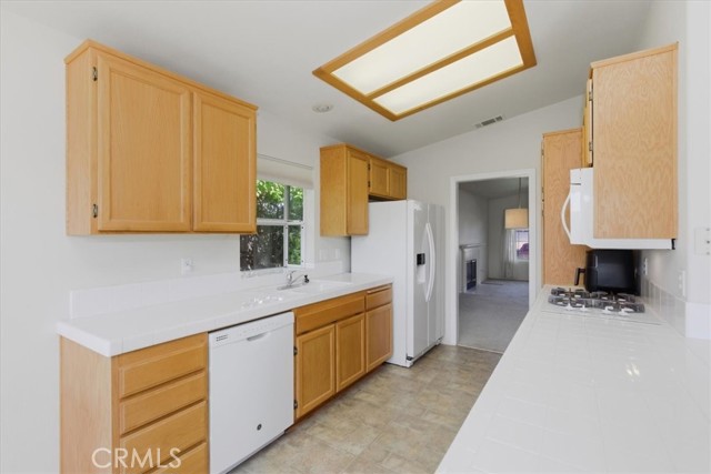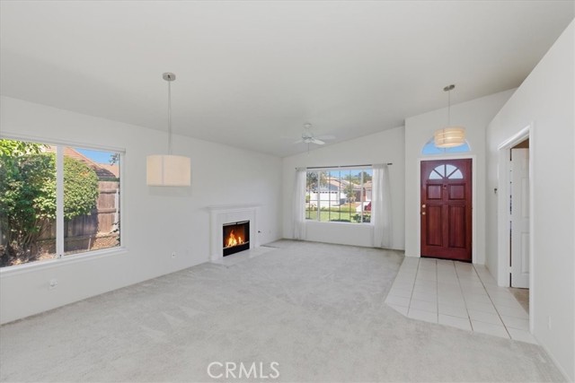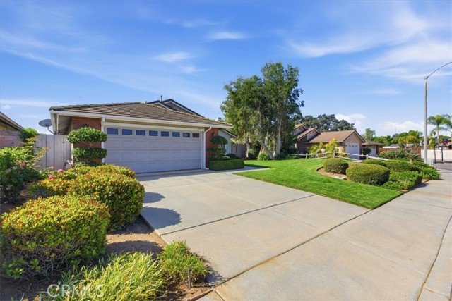 Welcome to this move-in-ready single-story ranch home tucked away on a quiet cul-de-sac in desirable Fallbrook. This charming 3-bedroom, 2-bath residence offers 1,620 square feet of comfortable living with a bright, open layout and thoughtful features throughout. Step inside to soaring vaulted ceilings, abundant natural light, and a spacious living room with a cozy gas-start fireplace—perfect for relaxing evenings. The oversized family room flows seamlessly from the living area, creating an ideal space for entertaining or everyday living. The kitchen features a gas cooktop, microwave, garden window, and a sunny dining area, all positioned to enjoy views of the beautifully maintained backyard. Dual-pane windows, ceiling fans throughout, and wide hallways enhance comfort and functionality. The primary suite offers two closets, mirrored wardrobe doors, and an en-suite bath with dual sinks and a walk-in shower. Additional highlights include indoor laundry with gas or electric options, a garage sink, and ample storage. Outside, enjoy a manicured yard with automatic sprinklers, a covered patio for outdoor dining, and mature fruit trees, including orange and grapefruit. The landscaped front yard, brick veneer accents, tile roof, and roll-up garage door add to the home’s curb appeal. Located on a peaceful cul-de-sac, this home offers privacy while remaining close to local amenities. A fantastic opportunity for first-time buyers or anyone seeking easy single-level living.