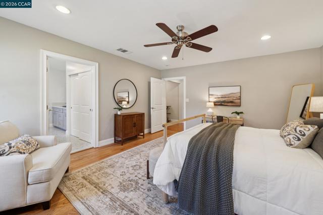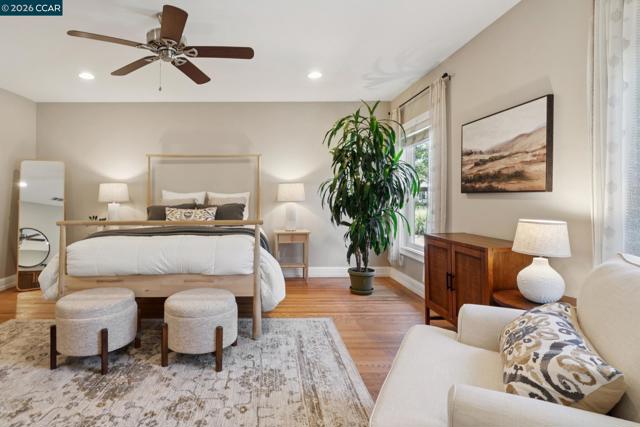 10/10. Absolute Jewel Box of a single level home in the beloved El Dorado Park! Jump in the wayback machine to days when everyone walked around the neighborhood, kids swang in tire swings, bikes were ridden & neighbors knew each other. Holidays are happily celebrated here with lights + decor out for every season. There are few spots like it: you need to drive through it to fully grasp the sunny, nostalgic vibe. The neighborhood is captivating...and the home? Gorgeous, updated + ready for you to move right in! Thoughtfully expanded years back w/ a breathtaking primary suite offering multiple closet areas & spa-like primary bath. Interior laundry room was constructed w/ built-in cabinetry and spacious, finished 2 car garage offers great storage. The interior boasts warm hardwood floors, freshly painted kitchen cabinets & high end lighting courtesy of Walnut Creek Lighting. An inviting family room is light-filled and delightful, w/ a fireplace & charming bay windows creating the quintessential reading nook. Not enough? How about OWNED NEMA2 Solar + a super fast ChargePoint EV charger! The corner lot offers mature trees, sprawling front lawn + beautiful backyard w/ lawn, pergola & garden area. Coveted convenient location near the trail, shopping center & highway 680: ideal for commuters.