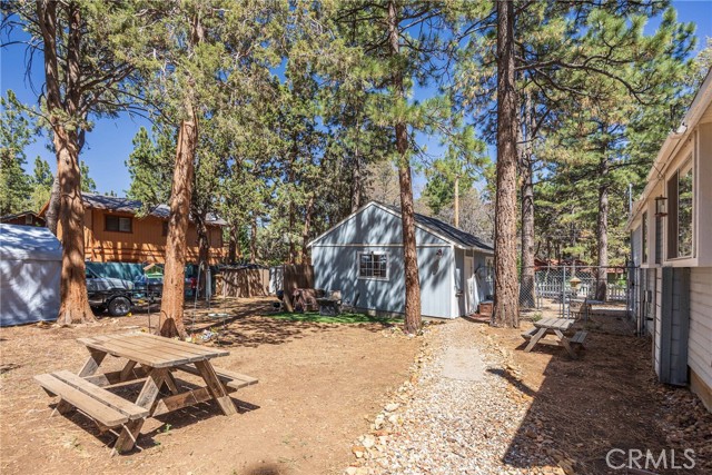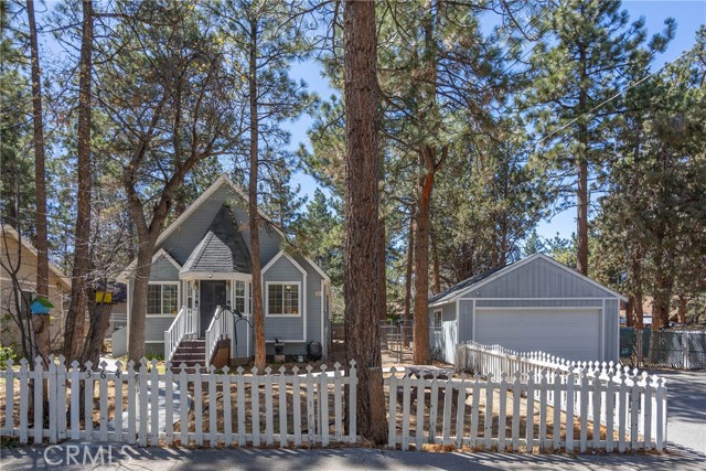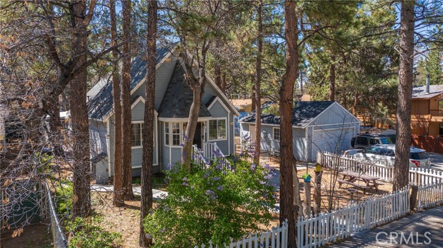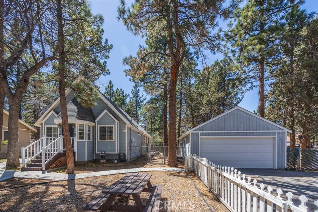 Storybook charm meets Mountain Living. Tucked away in the peaceful Sugarloaf area of Big Bear, this inviting 3-bedroom, 2-bath home captures the essence of relaxed mountain living. From the moment you arrive, the charming white picket fence and spacious, level lot set the tone for a property that feels both welcoming and full of possibility. Inside, a cozy living room creates the perfect gathering space—ideal for unwinding after a day on the mountain or enjoying quiet evenings at home. The well-appointed kitchen offers a functional layout with a pantry, and convenient washer and dryer hookups just steps away, making everyday living effortless. Step outside and you’ll find a backyard designed for making memories. The back patio is perfect for morning coffee, weekend barbecues, or simply soaking in the fresh mountain air. Set on a fully fenced 9,750 sq ft lot – nearly a quarter acre - there’s room to roam, garden, and enjoy the outdoors, complete with apple and cherry trees, lilacs and beautiful pines. Practicality meets versatility with a detached 2-car garage, ample RV and boat parking, and three storage sheds ready to house all your gear. An exterior handicap-accessible ramp adds an extra layer of convenience and accessibility. Whether you're searching for a full-time home, a weekend retreat, or an investment opportunity, this versatile property delivers charm, functionality, and a serene Big Bear lifestyle.