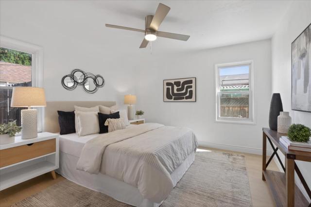 Home shows great! New exterior paint, new luxury vinyl rigid flooring(100% waterproof and 100% virgin PVC), new 5 inch baseboard, new interior paint, new interior lights, new ceiling fans, new plugs, new switches, new exterior laundry room door, new gate & more. New roof 4/25 with 10 year workmanship warranty. Bedrooms, living room, kitchen and dining room all have two windows each. Natural sunlight abounds. The kitchen features quartz countertops, island, 5 burner gas oven and range, microwave, dishwasher, refrigerator with ice and water, new exhaust fan, garbage disposal, recessed lights, fan, pantry & garden window. The living area is enhanced by a wood-burning fireplace and a bay window. The bathroom offers dual flush toilet, separate tub, and stall shower. Laundry amenities include washer, dryer & utility tub/sink. Additional features include small office, central AC, central forced air gas heating, double-pane windows, bedroom closets with lights, detached finished two car garage, tuff shed and extra long driveway. Dining options include a breakfast bar and a formal dining room. Convenient fenced yard and driveway and incredible Meyer lemon tree. Great Schools gives Piedmont High School a 10!