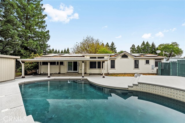 This expansive Chico property is powered by an impressive 86 panel solar energy system. The sparkling gunite pool that will keep you cool in the summer is accompanied by a multitude of RV hookups with 30/50 amp power and dedicated septic making this home an incredible place to host large get togethers. Sitting on a spacious .76 acre lot, this 2,782 SF manufactured home built in 2001 offers warm real wood floors and bright solar tubes that fill the interior with natural light. Two owned propane tanks and an oversized garage with extra electrical capacity make this property as functional as it is comfortable. Outside, a fenced equipment yard provides secure storage, while the stunning English walnut tree adds classic curb appeal to the front yard. With plenty of room to add an ADU, the possibilities here are wide open. Additional features include an oversized HVAC system, walk in tub, high end screened storm doors and enough parking for all your boats, trailers and toys.