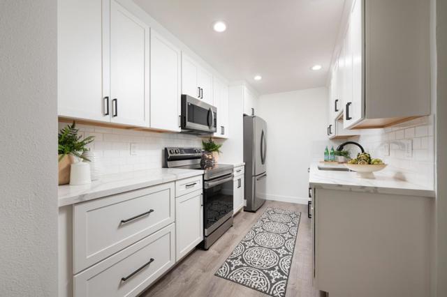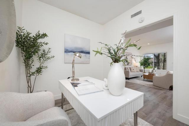 Set within a boutique building of just 36 residences at the gateway to San Mateo Park, this first-floor, single-level 3 bed/2 bath unit offers a comfortable and low-maintenance lifestyle. Thoughtfully updated, the interior features a dine-in kitchen with new cabinetry, quartz countertops, and a dramatic atrium window that spans the entire wall, filling the space with natural light, with mature trees just beyond the glass creating a softly layered, tucked-away feel. A pass-through connects the kitchen to the living area, creating an open, connected feel. Updated bathrooms include a remodeled primary shower and secondary bath. Recessed lighting adds a warm, modern feel throughout, while a bonus room enclosed by a 10-foot wall and French doors offers flexibility for a third bedroom or home office. Additional features include updated flooring, custom California Closets, and in-unit laundry with a full-size side-by-side washer and dryer. Enjoy community amenities including a pool, spa, clubhouse, and billiard room. One deeded parking with the option to rent a second. Located between downtown San Mateo and Burlingame, with easy access to dining, shopping, fitness, and Caltrain. An excellent opportunity for both homeowners and investors, with rental potential offering added flexibility.