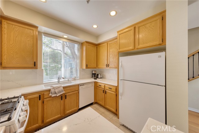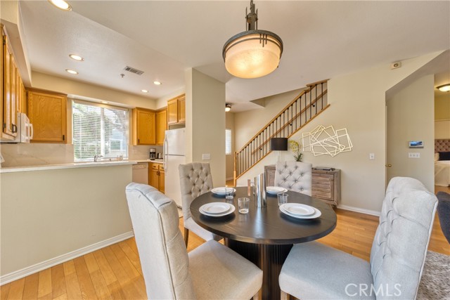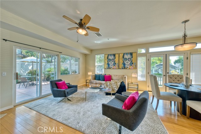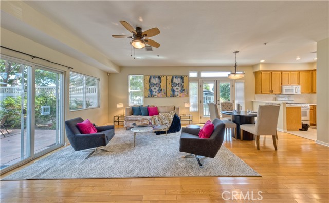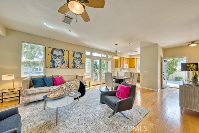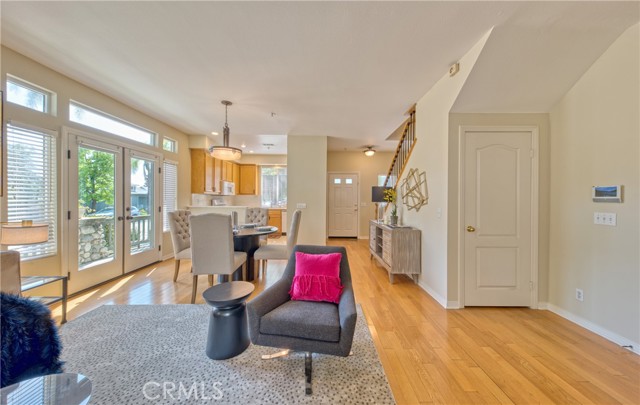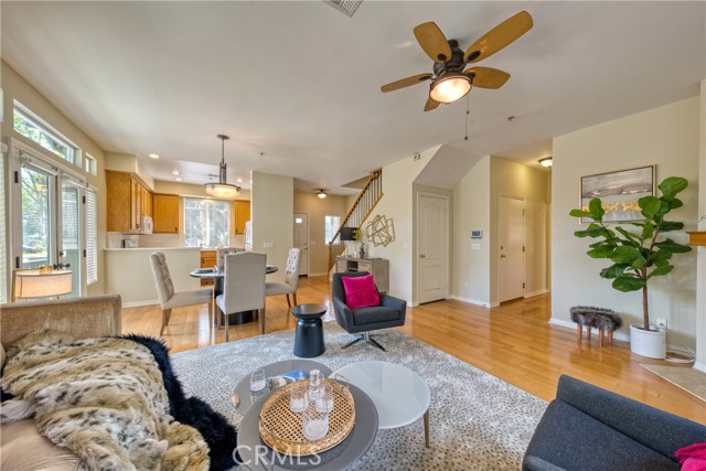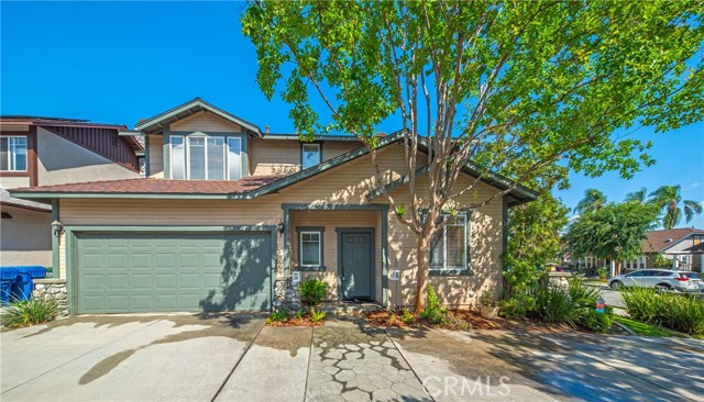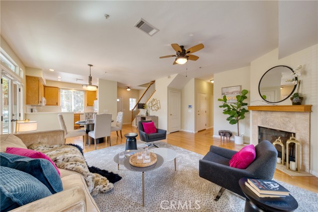 This well maintained end-unit residence offers the privacy of a single-family home within a planned unit development. The inviting main level features an open-concept layout, highlighted by a spacious living room centered around a cozy fireplace and a dedicated dining area that opens to a private patio. The kitchen is fully equipped with built-in appliances and ample workspace. Adding to the home's versatility, the main floor includes a well-appointed bedroom and bathroom, ideal for guest accommodations or a quiet home office. The upper level serves as a private retreat, featuring an expansive primary suite complete with a walk-in closet and a bathroom outfitted with a dual-sink vanity, a soaking tub, and a separate shower. Two additional bright bedrooms, a full guest bathroom, and a conveniently located laundry room complete the second floor. The outdoor space is designed for both relaxation and recreation, offering a concrete patio perfect for entertaining alongside a manicured lawn. Additional amenities include central air and heat, freshly painted interior, engineered wood flooring across the main living areas, and a two-car garage with direct interior access. Perfectly situated just a short distance from the vibrant shops and restaurants of Old Town Monrovia, the public library, and local grocery stores, this home combines suburban comfort with exceptional urban accessibility.
