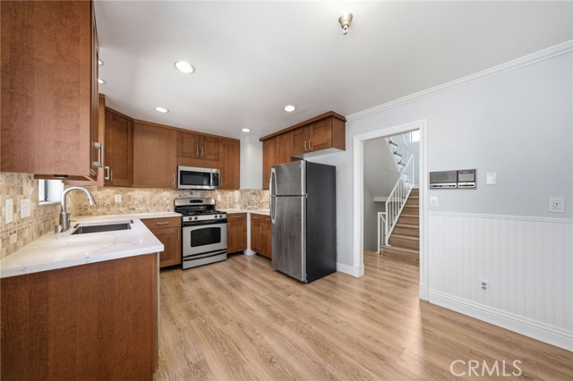 Well-located in North Lawndale, just minutes from South Bay beaches, this beautifully updated 3-bedroom,2.5-bath condominium offers approximately 1,531 sq ft of comfortable living space. The home features high vaulted ceilings and water resistant autumn cider oak laminate flooring throughout,creating a bright and cohesive interior. The kitchen has been updated with newer countertops,sink,and appliances (2022). The primary suite includes a remodeled walk-in closet with custom shelving. Additional features include recessed lighting,modern updated bathrooms, and attached 2-car garage with Epoxy-coated flooring. HOA amenities are pool and jacuzzi. Newer washer and dryer are included in sale. 15 minutes to SOFI Stadium, 20 minutes to Manhattan Beach Pier, and close to freeway access. Come see this spacious home!