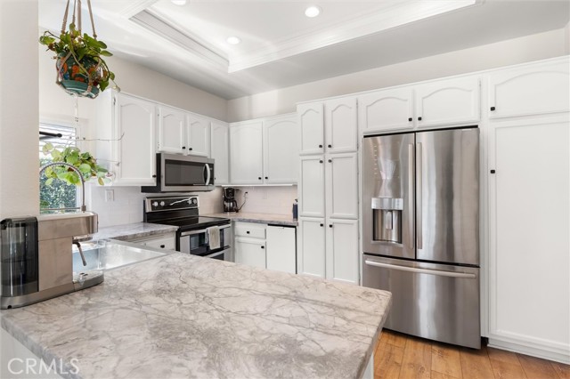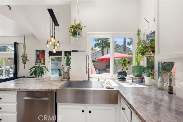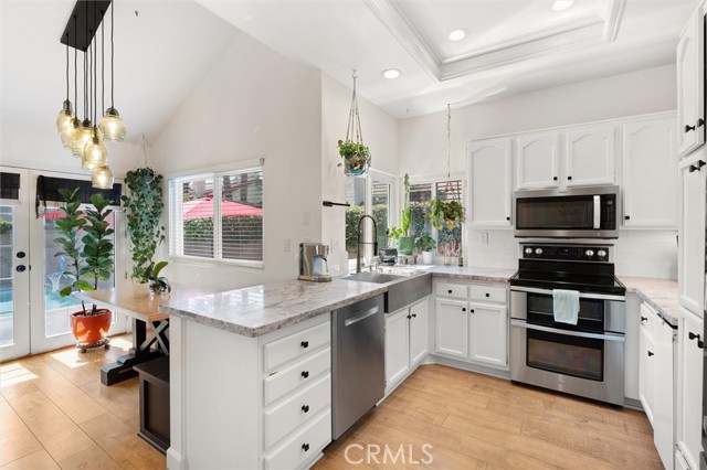 Located in the highly sought-after Briarwood community, this beautifully upgraded 3-bedroom, 3-bath pool home embodies quintessential Southern California living at its finest. Step inside to soaring volume ceilings and an abundance of natural light that immediately sets the tone. A formal living and dining room just off the entry offers an elegant space for entertaining, while the step-down family room—with its striking wraparound fireplace—creates a warm, inviting atmosphere and seamlessly connects to the outdoors through French doors. The bright white kitchen serves as the heart of the home, now enhanced with a brand-new Whirlpool double oven, and opens to a charming breakfast nook surrounded by windows that frame views of the backyard. Banquette seating and effortless indoor-outdoor flow make everyday living feel elevated yet relaxed. Designed with both comfort and hosting in mind, the spacious guest bath conveniently serves the pool area—perfect for seamless entertaining. The backyard is a true private retreat, thoughtfully upgraded with new pavers, refreshed landscaping, smart Govee string lighting with misters, and improved drainage, creating an ideal setting for everything from lively gatherings to quiet evenings under the stars. With underground piping already in place for future lighting and water features, the space is primed for further customization. Extensive upgrades throughout the home provide both style and peace of mind, including new interior paint, upgraded dimmable lighting and ceiling fans in every room, an upgraded 200-amp electrical panel, EV-ready outlet, and thoughtfully placed TV mount connections. Additional details like nightlight plug receptacles, a garage utility sink, and enhanced pool systems including grounding and an ultra-fine reusable filter reflect a high level of care and functionality. As a resident, you’ll also have the opportunity to enjoy Lake Mission Viejo membership, offering a true resort-style lifestyle with beaches, water sports, concerts, and year-round events. This is more than a home—it’s a lifestyle. And it’s one you truly have to experience to appreciate.