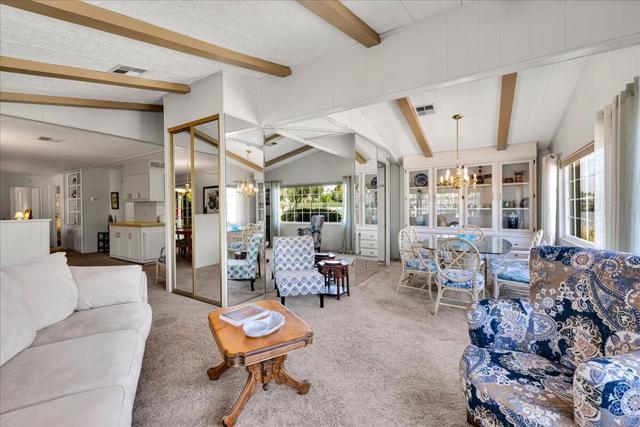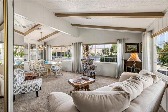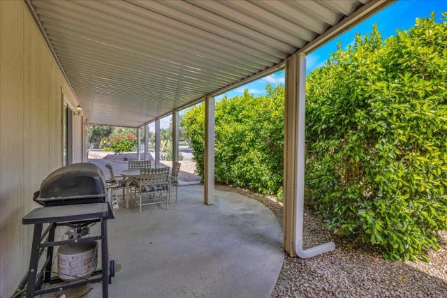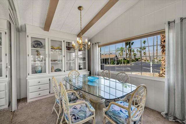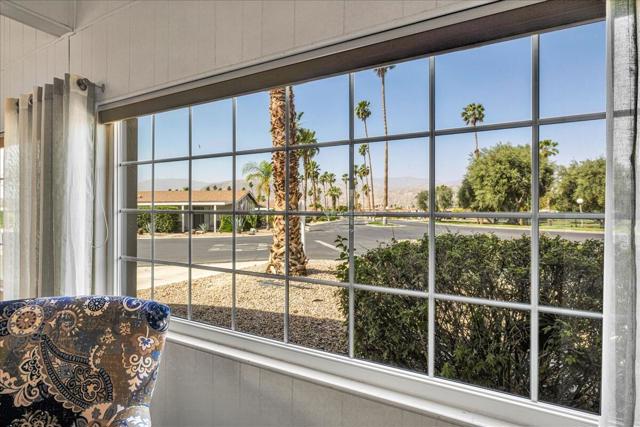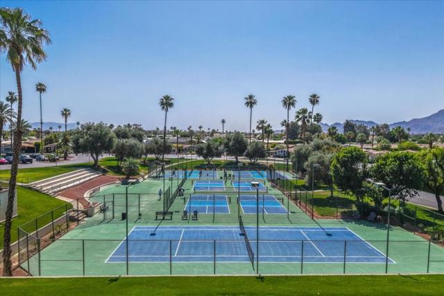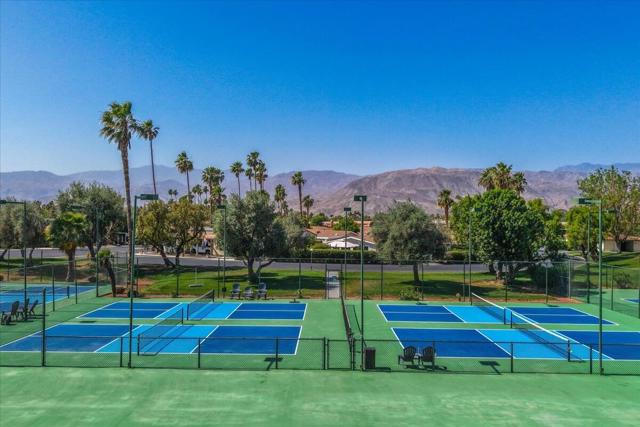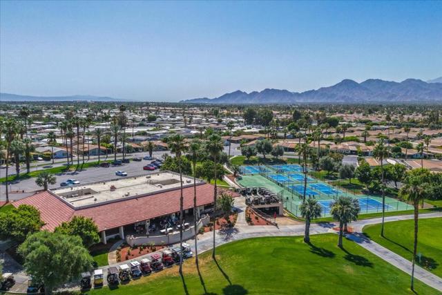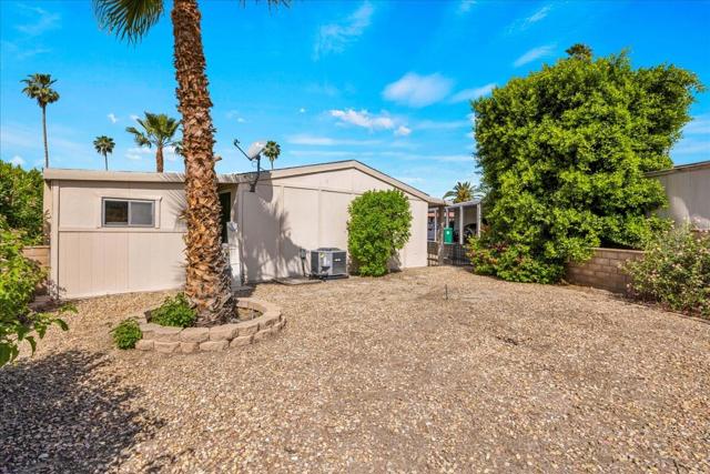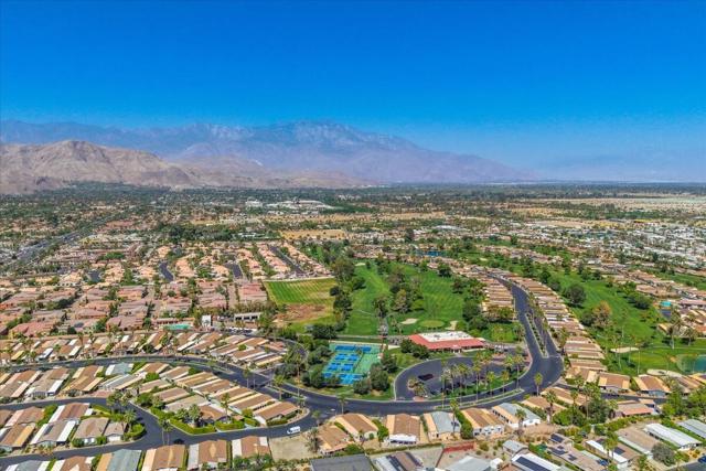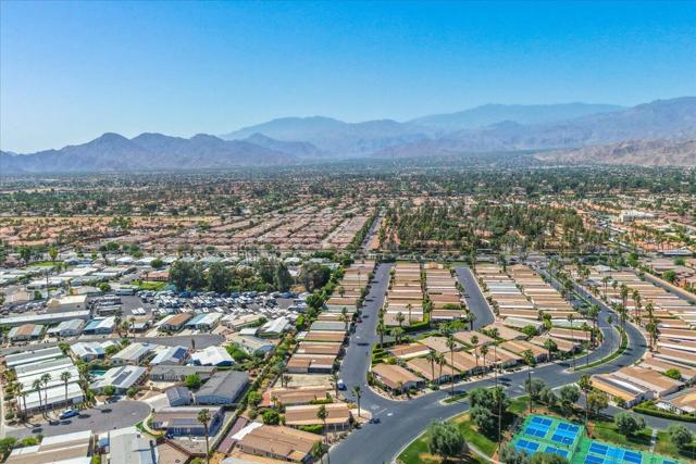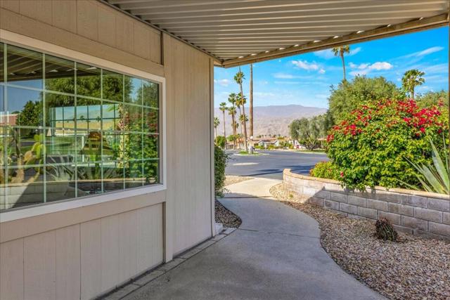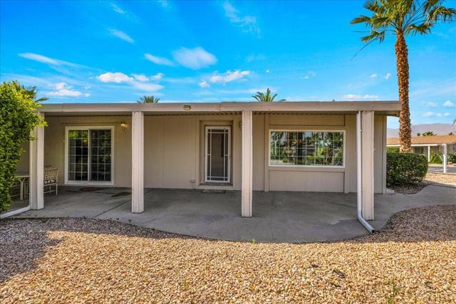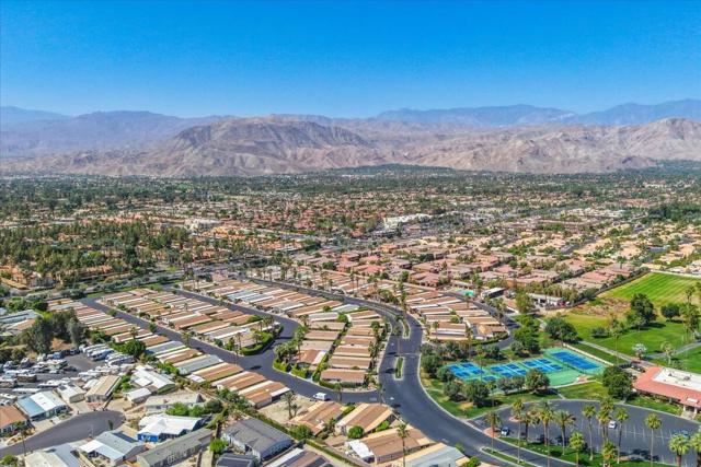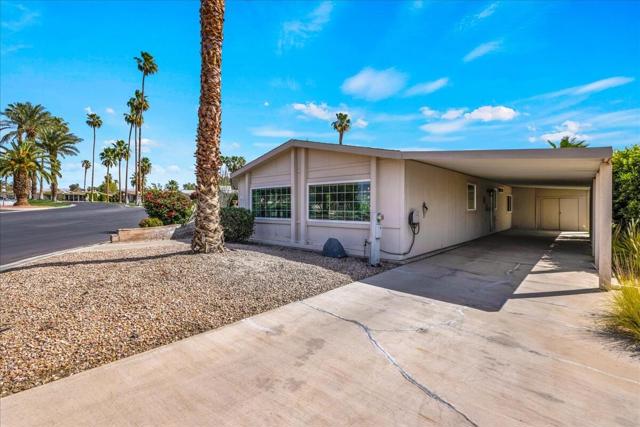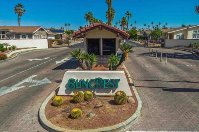 Suncrest Country Club (affectionately called ''Funcrest Country Club'' by some who live here) is a welcoming 55 and better gated community where life moves at just the right pace. Whether you enjoy a morning game of pickleball or tennis, a round of golf, or a quiet afternoon by one of the 3 pools, there's plenty to appreciate under Palm Desert's 269 sunny days a year. This well-positioned 2-bedroom, 2-bath home offers 1,536 square feet of living space and sits on one of the community's more desirable lots, with amazing mountain views, just a short distance from the clubhouse and sports courts. From both the living room and front dining area, you'll enjoy fantastice, wide, open views of the surrounding mountains. This home is thoughtfully arranged with two living areas and two dining spaces, giving you flexibility for entertaining or simply spreading out and enjoying your day. The primary suite, located in the back of the home for added privacy, featuries a spacious bathroom and generous closet space. The kitchen is open and practical, with ample cabinetry and counter space for everyday living. Outside, the covered patio stretches nearly the full length of the home. Its orientation provides comfortable shade for most of the day, making it an ideal spot to sit and take in the peaceful surroundings. Space #18 is one of the larger lots in the community, offering both a sizable side yard and an expansive backyard with plenty of potential, perhaps for a gazebo or hot tub. The carport easily accommodates multiple vehicles or a combination of cars and golf carts, and there's an additional shed that works well as a workshop, hobby space, or golf cart garage. And yes, the fabulous mountain views really are worth mentioning more than once.