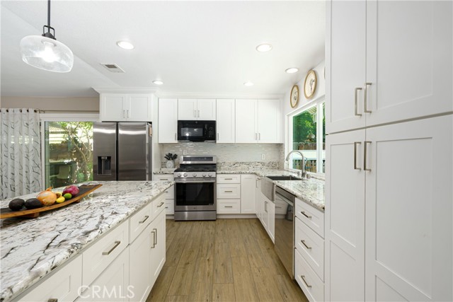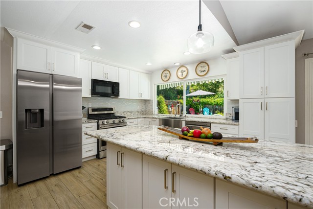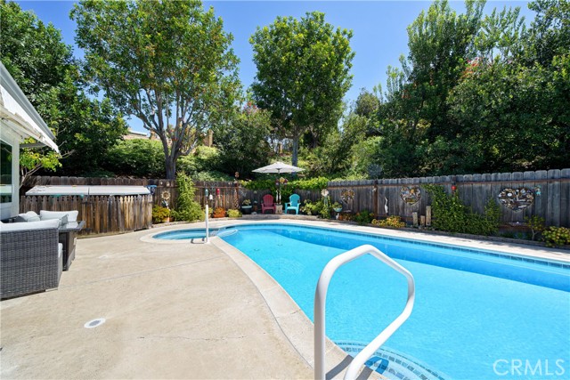 LOCATION....LOCATION....LOCATION...SINGLE STORY.....Looking for your dream home in Mission Viejo? Look no further! This stunning single family residence in the desirable New Castille tract boasts a magnificent homesite. With almost 1600 square feet of living space, this 3 bedroom, 2 bathroom home shows beautifully. Upon entering, you will be greeted by a bright and open floor plan in the formal living area, with cathedral ceiling, providing ample natural light. Step into the great room and you will be warmed up by the cozy glow of the fireplace. The spacious and fully remodeled kitchen, with kitchen Island, multiple stainless steel built-ins, and farmers sink is perfect for entertaining. The private backyard with pool, spa and covered patio, is a true oasis and is always ready for great entertainment or a quiet retreat. The property boasts a generous master bedroom, with ensuite remodeled bathroom. The 2 additional bedrooms and secondary remodeled bathroom make this home absolutely complete. Additional features: property repiped in full with PEX approx. 2021 * New appliances kitchen in 2025 * roof replaced approx. 2021 * HVAC replaced approx. 2022 * kitchen, dining room and family room remodeled approx. 2016 * both bathrooms remodeled approx. 2023 * double pane windows * recessed lighting * new ceiling light fixtures/fans through the home replaced approx. 2024/2025 * automatic sprinklers front and back yard * front entry door and front entry concrete work approx. 2022 * New white/blue quartz resurface and tile work for pool & spa and new heater for both pool & spa approx. August, 2021* Capistrano Unified School District * Lake Mission Viejo membership * 2 car garage * close to Oso Creek Trail, shopping and I-5 FWY