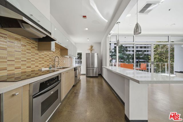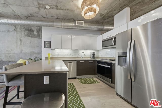 Step into the heart of DTLA at the highly sought-after Market Lofts this 4th-floor industrial-chic one bedroom has that true "Downtown" vibe with soaring ceilings, oversized windows, and an open layout that just feels right. The views are a major highlight here: you've got a great look at the DTLA skyline right off Flower St, giving you that iconic city-light backdrop day and night. The kitchen is a standout for this building with a peninsula that adds bar seating (rare for these units) and makes the space perfect for morning coffee, casual dinners, or entertaining without sacrificing the loft feel. The layout also includes a walk-in closet for legit storage, which is huge in a one-bedroom loft. And if you want indoor/outdoor living, this one delivers in a big way this unit has the largest balcony you'll find in the building, giving you the kind of outdoor space that's almost impossible to come by in DTLA. Market Lofts rounds it out with resort-style amenities including a pool, gym, screening room, and a game room with a pool table, plus Amazon lockers for everyday convenience. Add in a grocery store in the building and you're minutes from coffee, dining, Whole Foods, Ralphs, LA Live, and more this is downtown living done right.