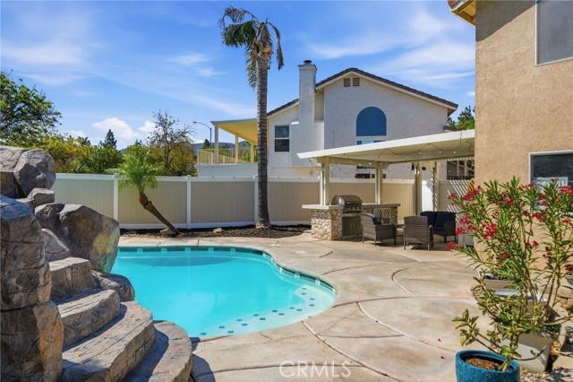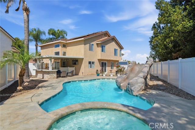 Welcome to your opportunity to own in one of South Corona’s most sought-after neighborhoods—where pride of ownership, top-rated schools, and a true community feel come together. Just steps from a neighborhood park, this home offers a spacious and inviting open floor plan with soaring vaulted ceilings and abundant natural light. The formal dining room features a cozy fireplace, creating the perfect setting for gatherings and everyday living. Situated on a rare pie-shaped lot, the property offers incredible flexibility—whether you envision expanding the home, adding a sport court, creating additional outdoor living space, or storing recreational toys. The backyard is a true entertainer’s dream, designed for year-round enjoyment with: A resort-style pool and spa (recently resurfaced), A fun rock slide feature, Covered seating area, Built-in BBQ and refrigerator, Perfect for hosting, relaxing, and making the most of Southern California living. Inside, the home features a grand dual staircase that creates a striking first impression, along with a true two-story layout (not a split level), offering both functionality and architectural appeal. Additional highlights include: Paid solar for energy efficiency and long-term savings, New A/C system New pool equipment, Tesla charging unit included for convenient at-home EV charging, Bright, open living spaces ready for your personal design touches. Located in the heart of South Corona, this home offers easy access to: Highly regarded schools, including Santiago High School. Scenic parks, walking trails, and mountain views. Shopping, dining, and commuter-friendly access to the 15 & 91 freeways. With its clean streets, and well-maintained surroundings, South Corona is often described as having an “Orange County feel”—offering more space and value without sacrificing lifestyle. This is your chance to create your dream home in a location that truly has it all.