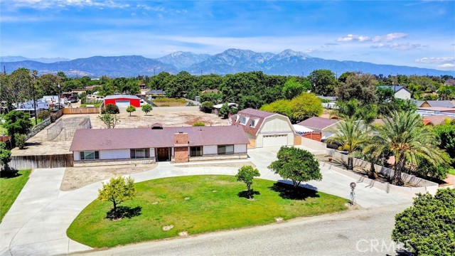 Rare opportunity to own a sprawling 1+ acre property in Chino with incredible potential! This single-story home offers over approximately 2,400 sq ft of living space, featuring 4 bedrooms and 3 bathrooms, providing a flexible layout for a variety of needs. The property truly impresses with its expansive grounds and amenities, including an oversized detached garage with space for multiple vehicles —ideal for car enthusiasts, contractors, or anyone needing substantial storage. There is also a partially completed space above the garage, offering exciting potential for a future ADU, guest quarters, or possible income-producing unit (not currently permitted as living space). A huge, newer concrete circular driveway completed in 2021 provides abundant parking, and there's room for RV parking, additional vehicles, toys, or equipment. The grounds are dotted with mature fruit trees (persimmon, orange, grapefruit, pomegranate and more) and include existing animal enclosures—perfect for those interested in a hobby farm setup, chickens, or other small animals. The home includes a newer HVAC system also installed in 2021, offering a great starting point for updates. While the property does need some TLC, it presents a fantastic opportunity for buyers to build sweat equity and customize to their vision. With its rare lot size, versatile improvements, and endless possibilities, this is a one-of-a-kind property you won’t want to miss! Please Note: Home is being sold AS-IS.