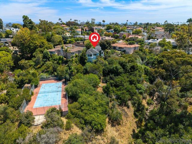 Rooted in the heritage of one of San Diego’s most architecturally rich neighborhoods, this timeless residence is perched on an elevated lot in the highly sought-after enclave of North Mission Hills. Enjoy captivating views of Presidio Park, Mission Bay, expansive treetops, and serene canyon vistas. Large windows throughout the home invite abundant natural light while showcasing the picturesque surroundings. Set on a scenic, gently sloping 0.25 acre lot on a cul-de-sac with open space and park beyond, this classic single story home blends historic character with lush, mature landscaping. The light-filled living room exudes warmth and hospitality featuring hardwood floors, a classic brick fireplace, and built-ins. Just off the kitchen, a cozy breakfast nook opens directly to a private patio nestled among mature trees—an ideal setting for morning coffee or peaceful evening relaxation. The property offers a rare opportunity for space, privacy, and future potential in an exceptional location. A two-car attached garage provides everyday convenience along with additional storage. Experience the best of urban living with a seamless connection to nature, all while being just moments from downtown, parks, hiking trails, restaurants, and beaches. This home offers both tranquility and convenience in equal measure.