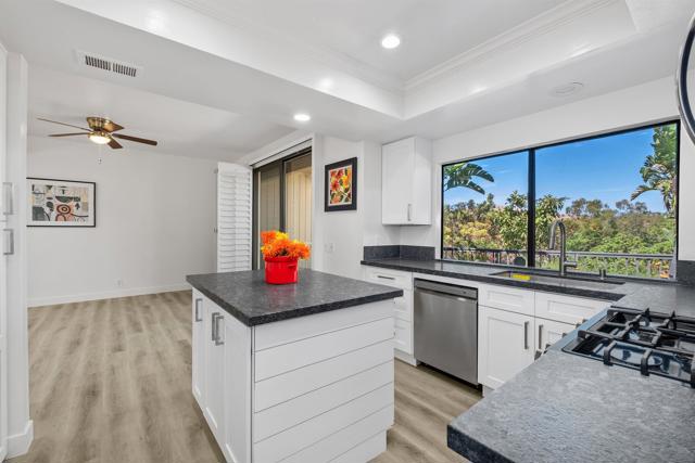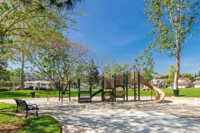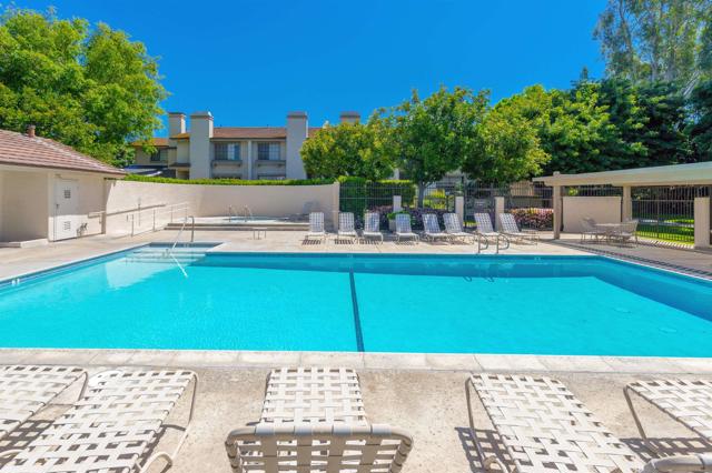 Bright and quiet tri-level unit with great views of rolling hills and green belt. Freshly painted with all new vinyl flooring, kitchen cabinets with stainless steel appliances, granite counters and a bright, spacious living room with fireplace. Spacious master bedroom with oversize new shower, mirrored closet door and a balcony with beautiful views. Great yard with built-in bench around a mature tree perfect for entertaining. Library/den with book shelves and next to a full bath may be used as a 4th bedroom. Located in master community of Turtle Rock Glen with access to Community pool, spa and tennis courts and walking trails.