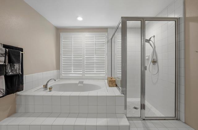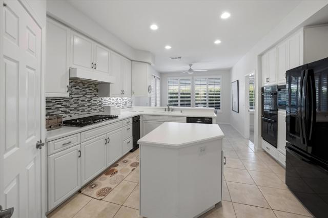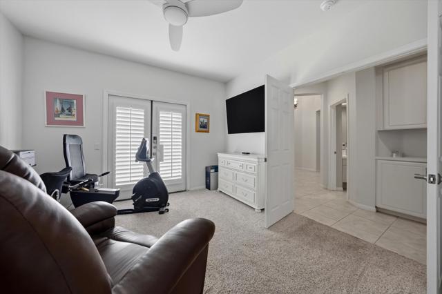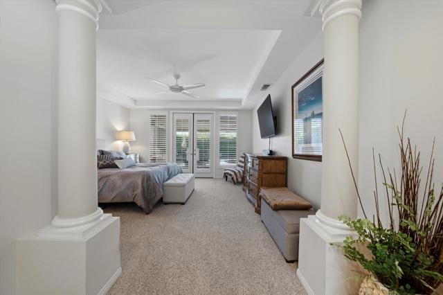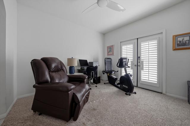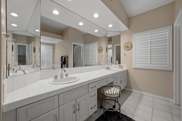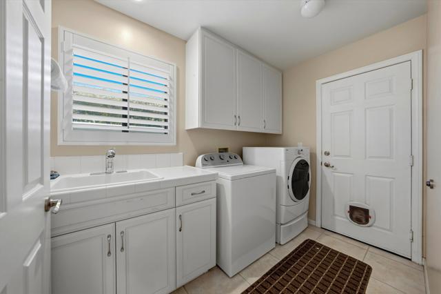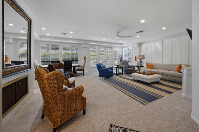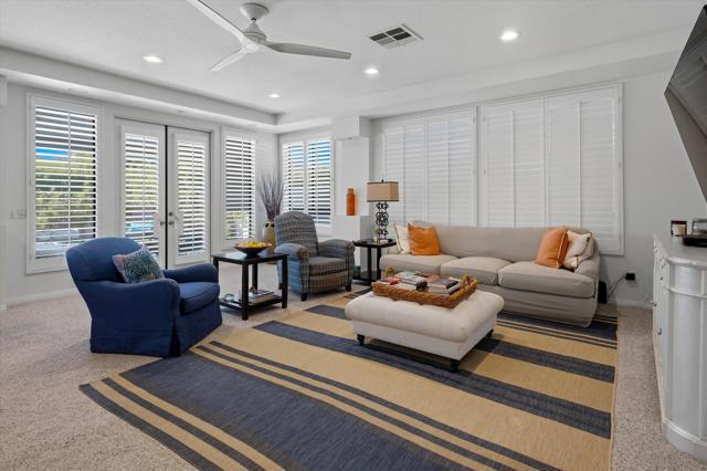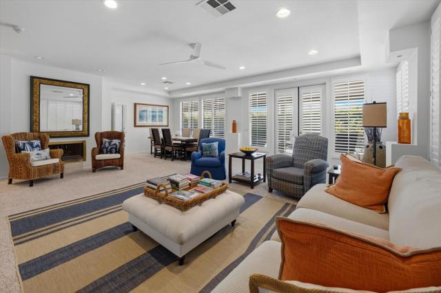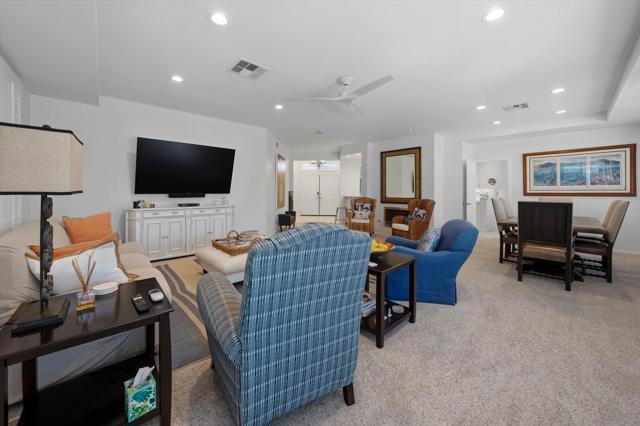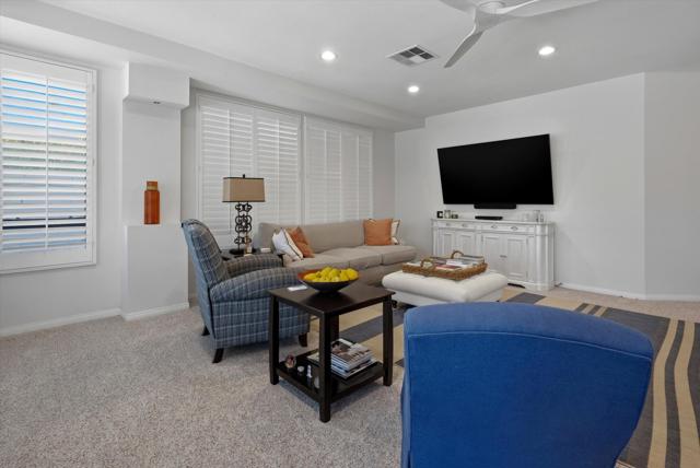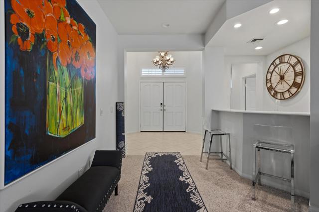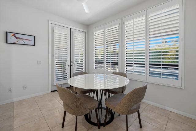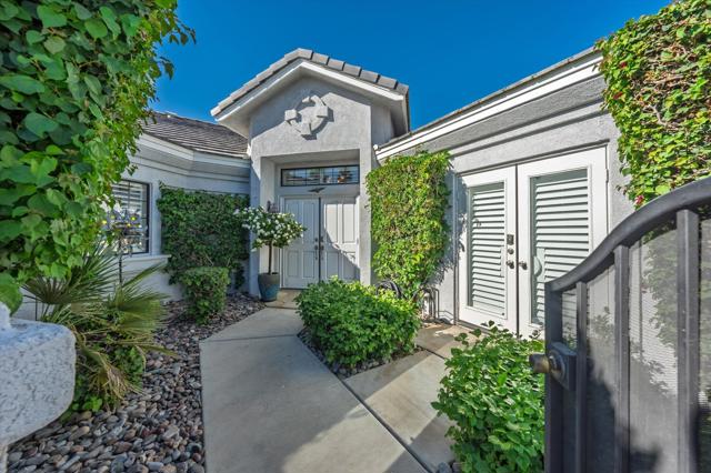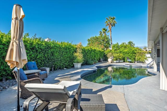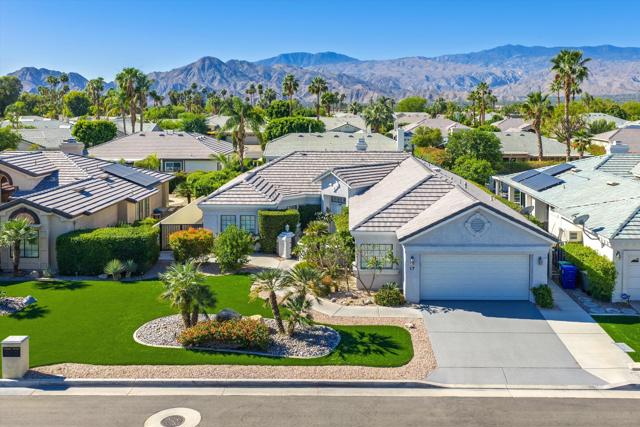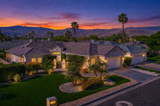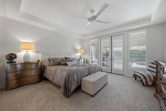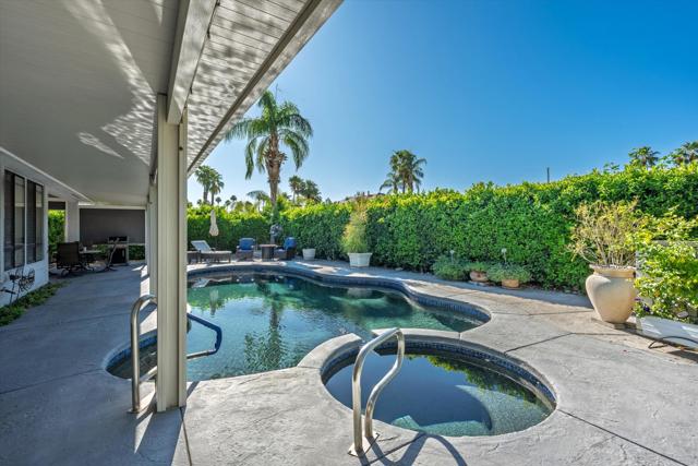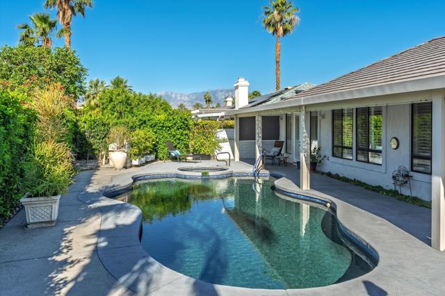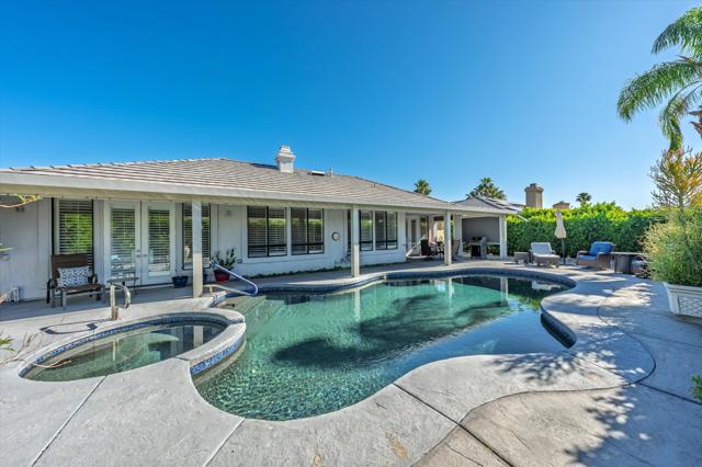 Welcome to this beautifully updated 3-bedroom, 3-bath pool home nestled in the desirable Belmonte Estates of Palm Desert! Showcasing a bright and airy open-concept layout, this residence offers a spacious great room with a cozy fireplace, enhanced recessed lighting, and an inviting dining area--perfect for both everyday living and entertaining.The well-appointed kitchen features a center island, striking mosaic glass backsplash, pantry, and charming breakfast nook. French doors and plantation shutters add elegance throughout the home.Each bedroom offers its own ensuite bath, providing comfort and privacy for family and guests alike. The generous primary suite boasts a custom walk-in closet and a luxurious bath with dual vanities, a step-in shower, and a separate soaking tub. The third bedroom includes a private casita-style entrance from the courtyard--ideal for guests or a home office.Upgrades include enhanced landscaping with artificial turf, new refrigerator, plus a newer water heater and improved pool equipment. Additional highlights include ceiling fans throughout, and recessed lighting. Enjoy the Culligan water softener and purification system, and a mini-split A/C unit in the garage.Step outside to a serene, south-facing backyard designed for both relaxation and entertainment. Enjoy the ease of low-maintenance turf along with a stunning pebble finish saltwater pool and spa. The expansive aluminum patio cover with roll-down shades creates a comfortable outdoor living space, while the upgraded mister system keeps things cool during warm days.The garage is equally impressive, offering a freshly finished interior, ample built-in storage, and a flexible bonus area perfect for a workshop, gym, or hobby space. From the glazed driveway to the thoughtfully curated landscaping, every detail enhances the home's standout curb appeal. This property seamlessly blends comfort, style, and functionality for the ultimate Palm Desert lifestyle.