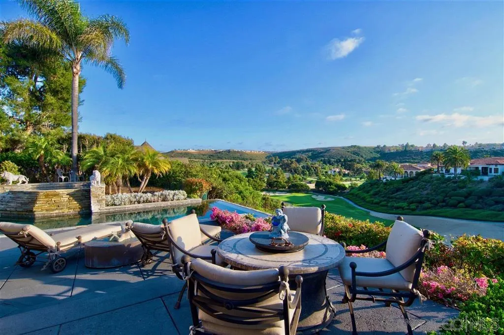 A dream come TRUE! No design detail overlooked in this Custom Single Level masterpiece, ideally located within the Prestige Rancho Santa Fe, Golf course community, Del Mar Country Club. Nestled above the 11th green and 12th tee box this coveted location offers unprecedented privacy coupled with panoramic views of the 12th fairway and green as well as "Out of this World" westerly views framing mesmerizing sunsets. Golf Club is thriving with initiation fees as low as $1,000 & over 80 new members. SUCH FUN